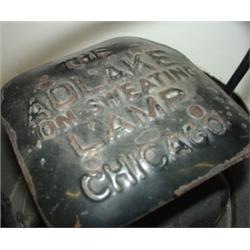 ADLAKE 4-WAY RAILROAD LANTERN. Two cobalt blue glass shades and two amber glass shades. Marked on top of frame "The Adlake On-Sweating Lamp-Chicago". 17.5" H