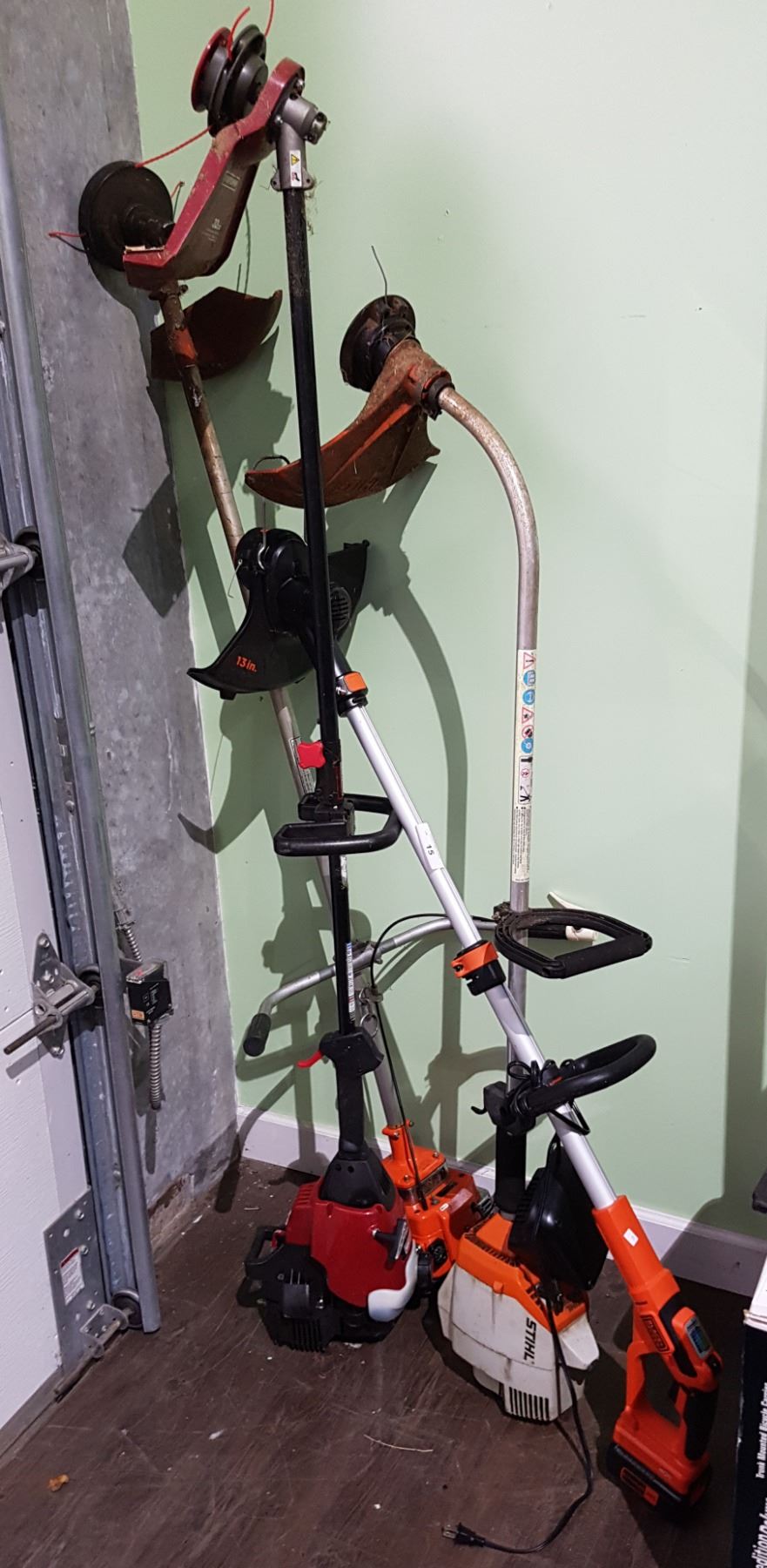 STIHL GAS POWERED, CRAFTSMEN GAS POWERED, BLACK & DECKER GAS POWERED, & BLACK & DECKER CORDLESS W/CHARGER. ALL ARE UNTESTED. NO SHIPPING