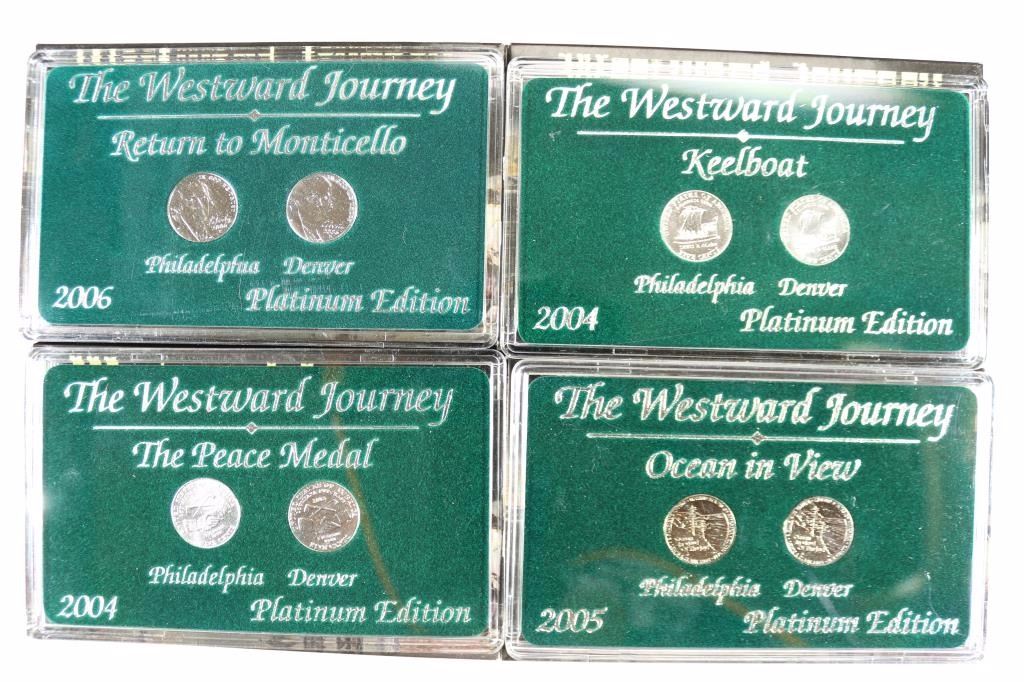2004-P & D KEELBOAT, 2004-P & D PEACE MEDAL, 2005-P & D OCEAN IN VIEW NICKEL AND 2006 RETURN TO MONTICELLO, WITH BOXES