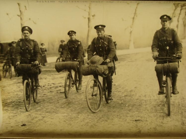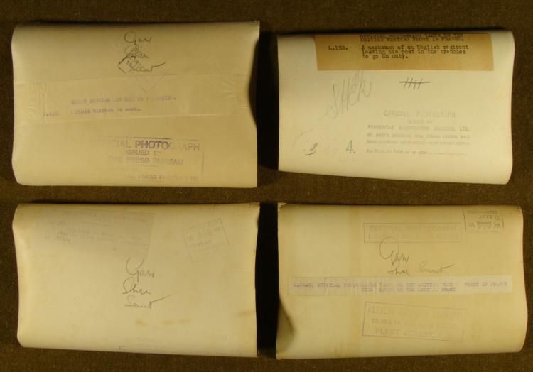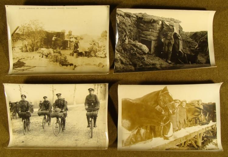 HERE ARE 6X8" WWI BRITISH PRESS PHOTOS, CAPTIONED & STAMPED. THE PHOTOS ARE IMAGES OF WINTER CONDITIONS WITH HORSES, BICYCLE BRITS IN ITALY, A BRITISH MARKSMAN, AND A BRITISH FIELD KITCHEN IN PALESTINE. *