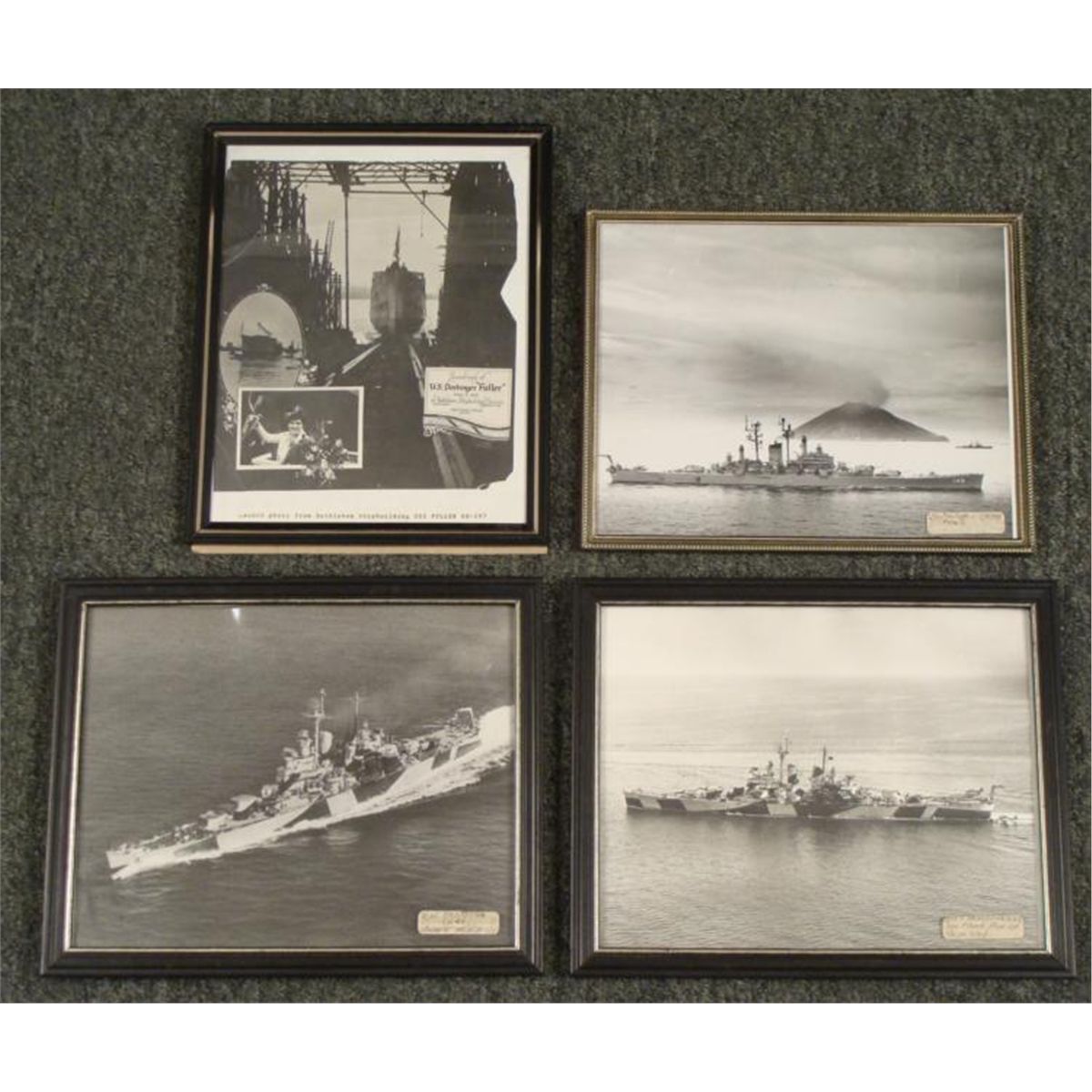 4 WWI & WWII FRAMED BATTLESHIP PHOTOS * 1) USS NEWPORT NEWS 8X10 2)USS PASADENA CL65 GOING HOME 8X10 3)USS FULLER LAUNCH 1918 8X10 4)USS PASADENA SEA PLANE PICK-UP FROM SLED *