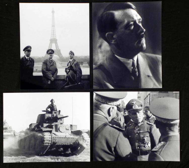 Here are 4 photographs that depict two powerful Nazi leaders during WWII. * * These are 8 x 10 black & white glossy high quality archive reprints. All are in excellent condition. * * * They feature: * * Hitler visiting Paris with Albert Speer (left) and artist Arno Breker Hitler portrait Erwin Rommel Erwin Rommel in Panzer tank