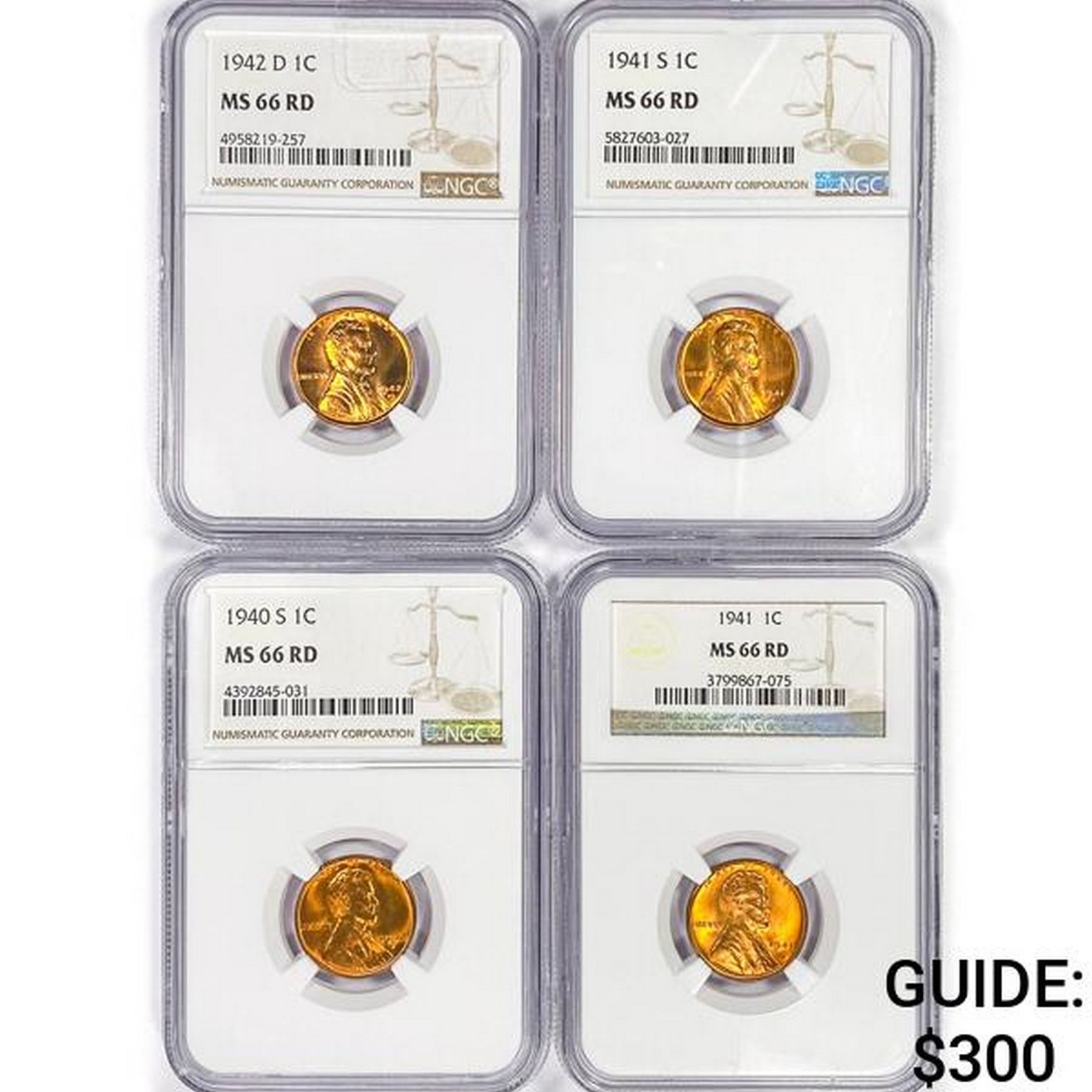(4) Wheat Cent NGC MS66 RD 1940-1942