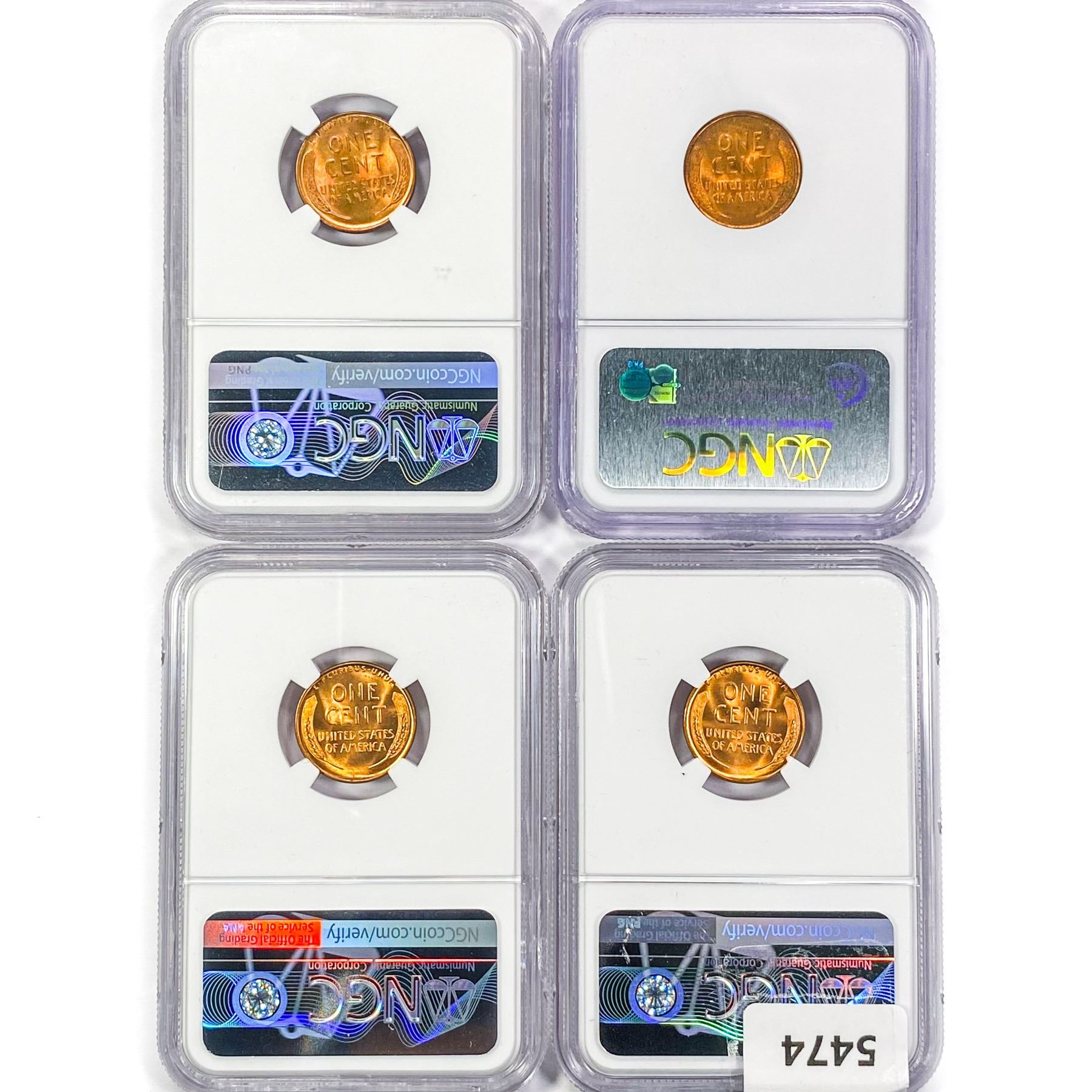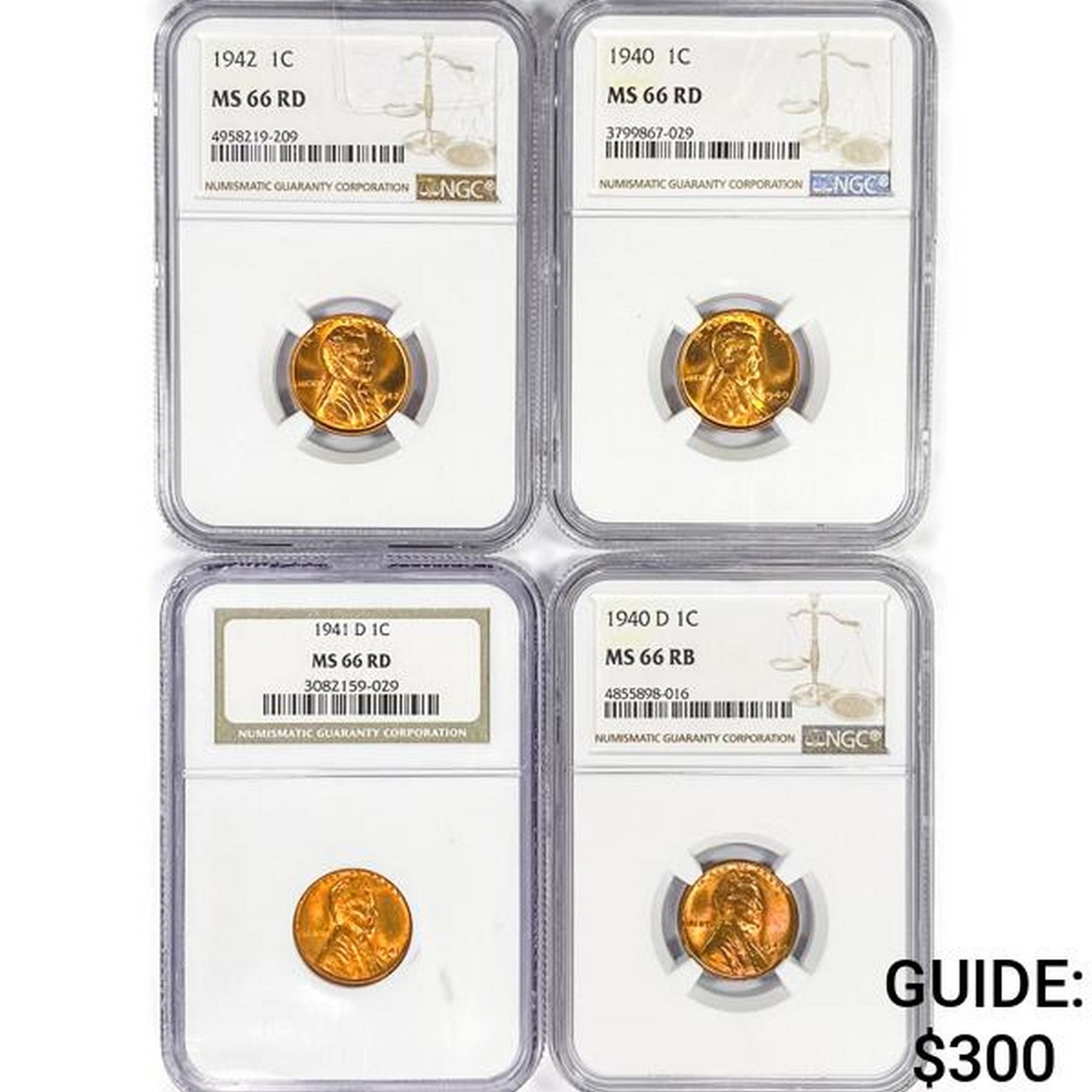 (4) Wheat Cent NGC MS66 RD 1940-1942