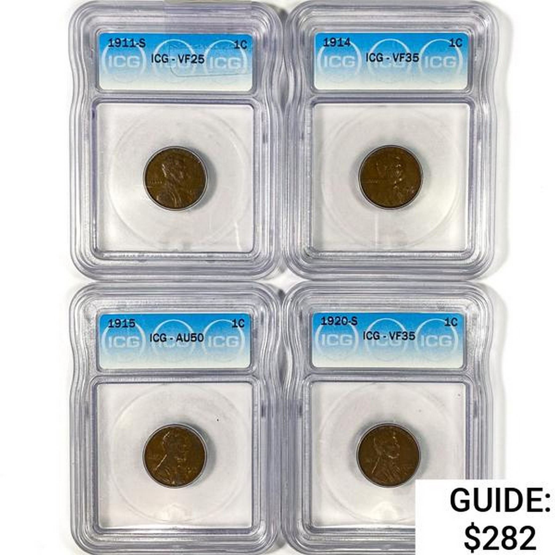 [4] Wheat Cents ICG AU,VF 1911-1920