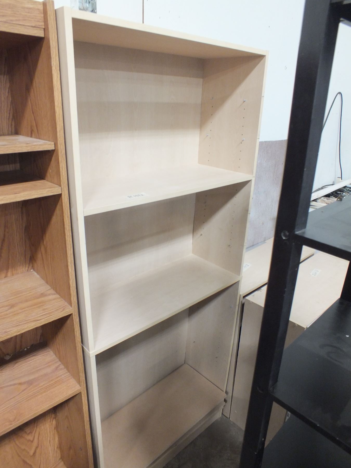 4 Wooden Book Shelves, 29 1/2"w 71 1/2"h 11 1/2"d... x1, 29 1/2"w 32"h 11 1/2"d...x3....used