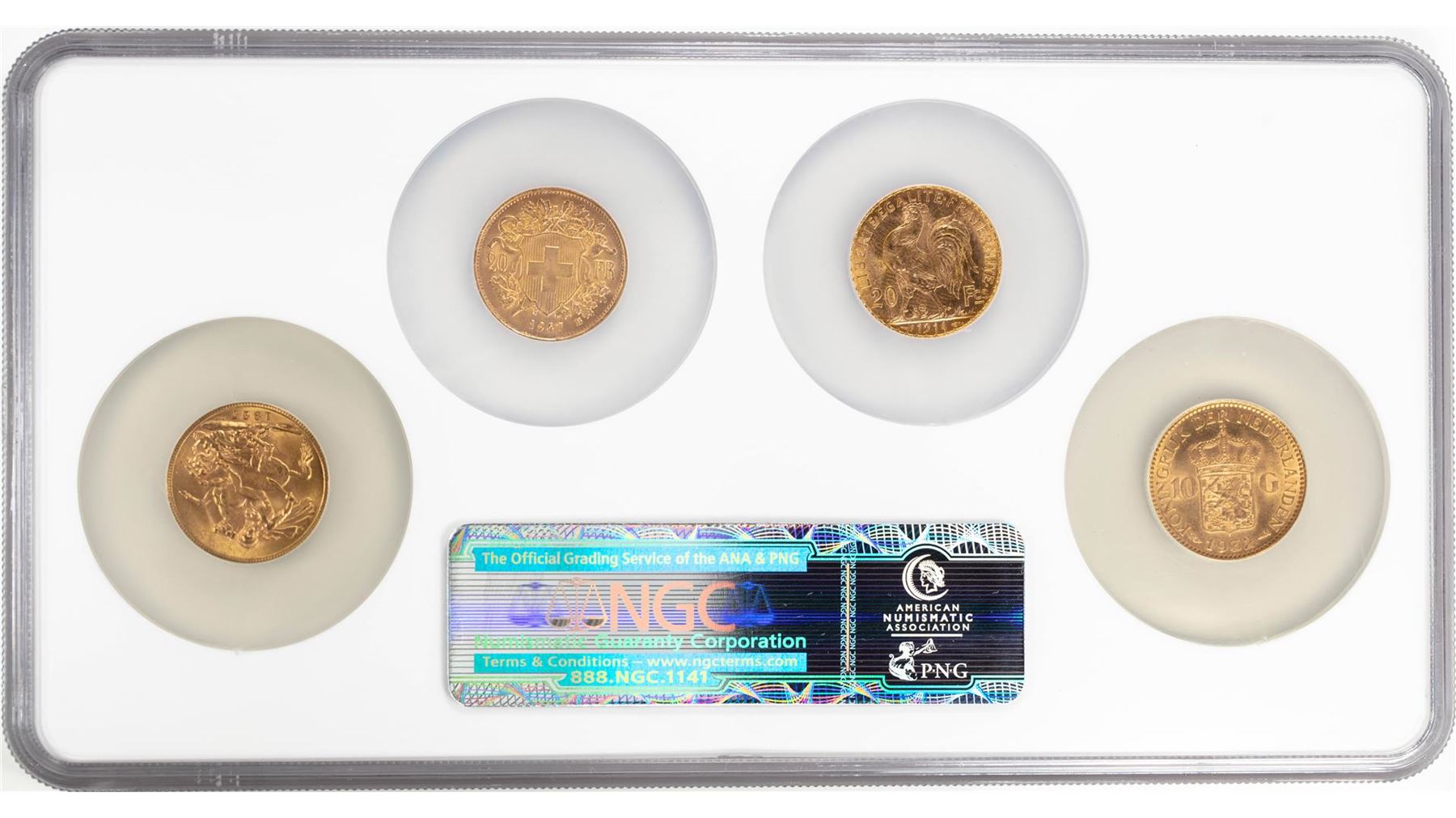 One Lot of (4) World Gold Coins '27 South Africa '47 Swiss '14 France '32 Netherland NGC Uncirculated. NGC Certified.