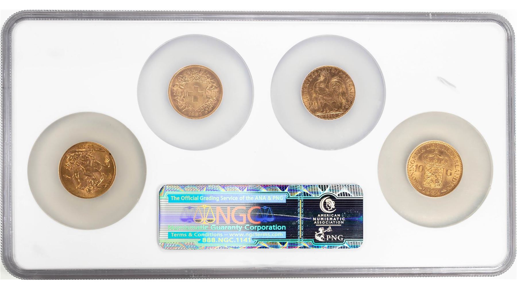 One Lot of (4) World Gold Coins '28 South Africa '49 Swiss '10 France '32 Netherland NGC Uncirculated. NGC Certified.
