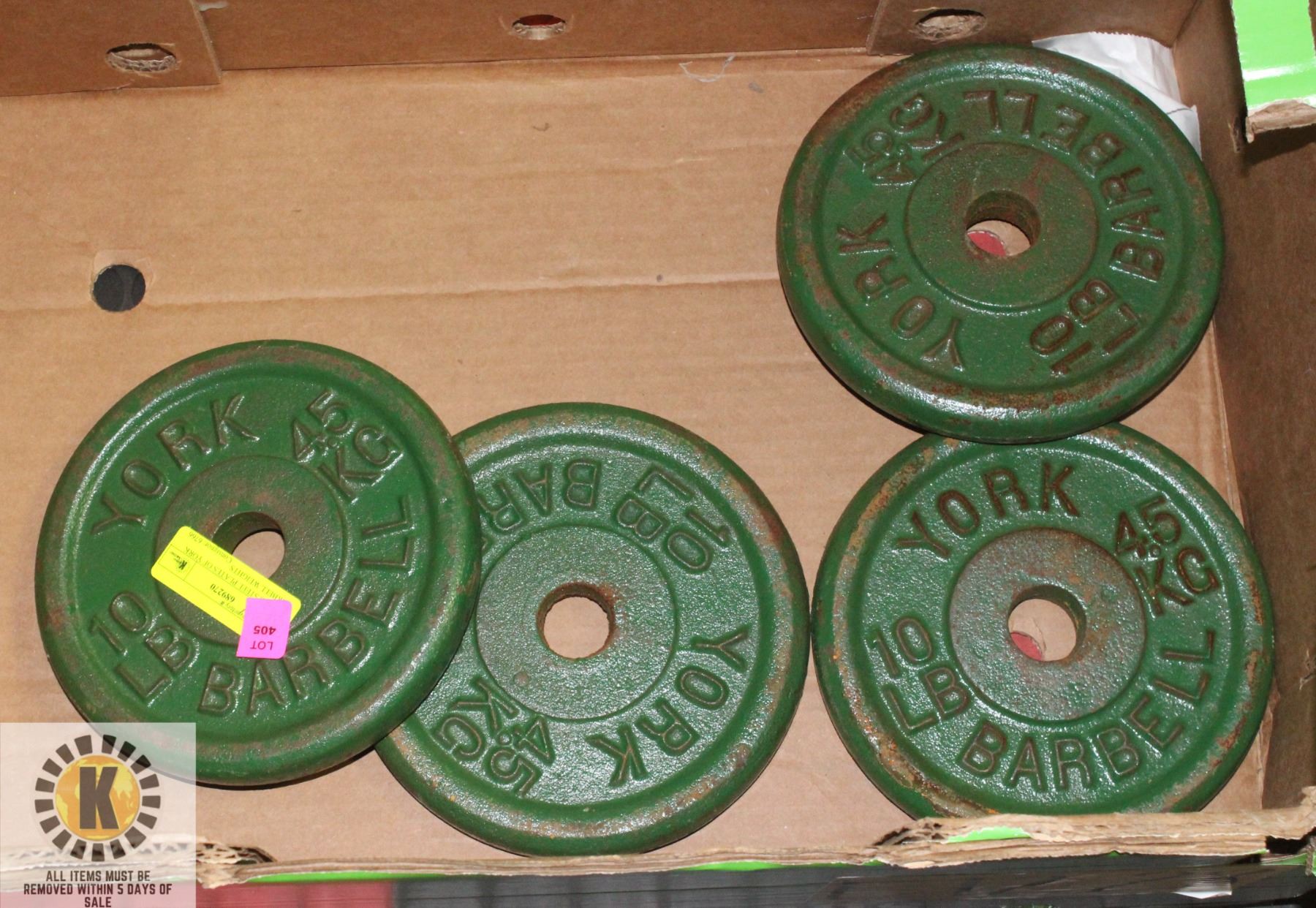 4 X 10 LBS STEEL PLATES OF YORK BARBELL WEIGHTS