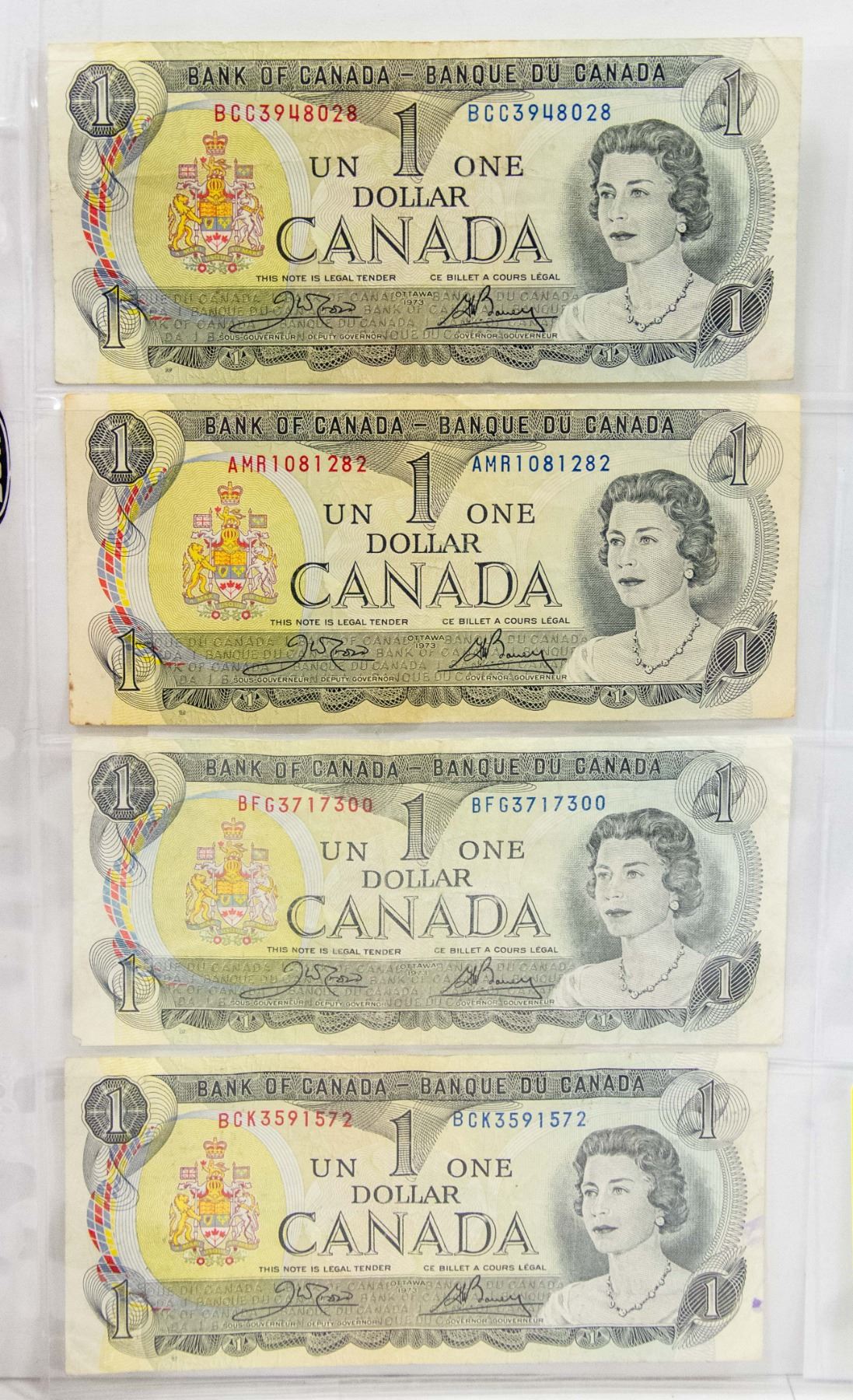 4 X 1973 CANADIAN $1 BILLS