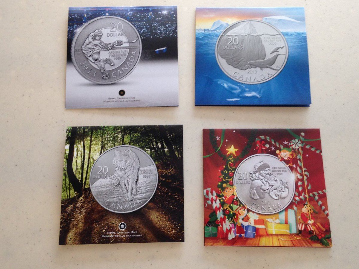4 fine silver 9999 $20 2013 Complete year serie Iceberg and whale, wolf, hockey and Santa Clauss