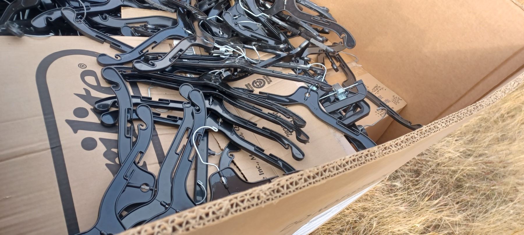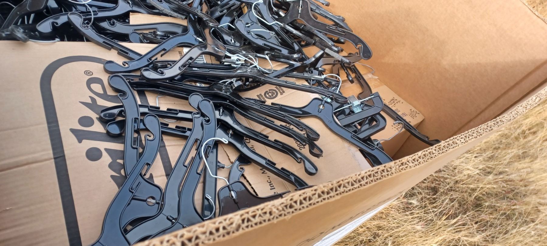 4 X 4 X 3 FT GAYLORD BOX FILLED WITH ASSORTED CLOTH HANGERS