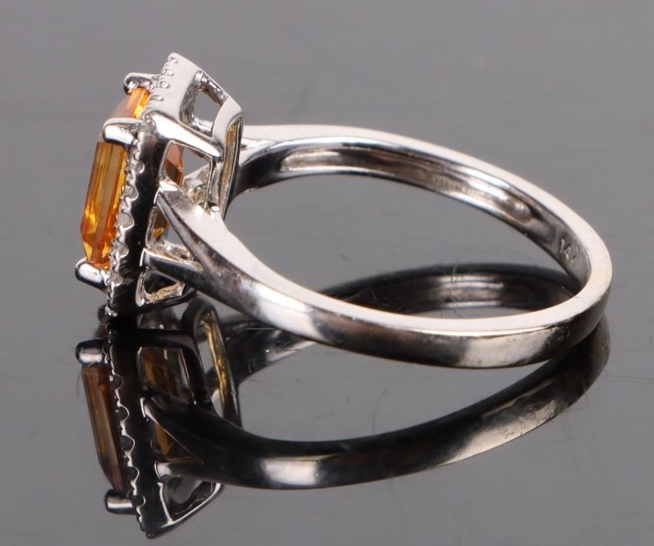 4 X 6mm Citrine & 0.2ctw. diamond 14 karat white gold ring.