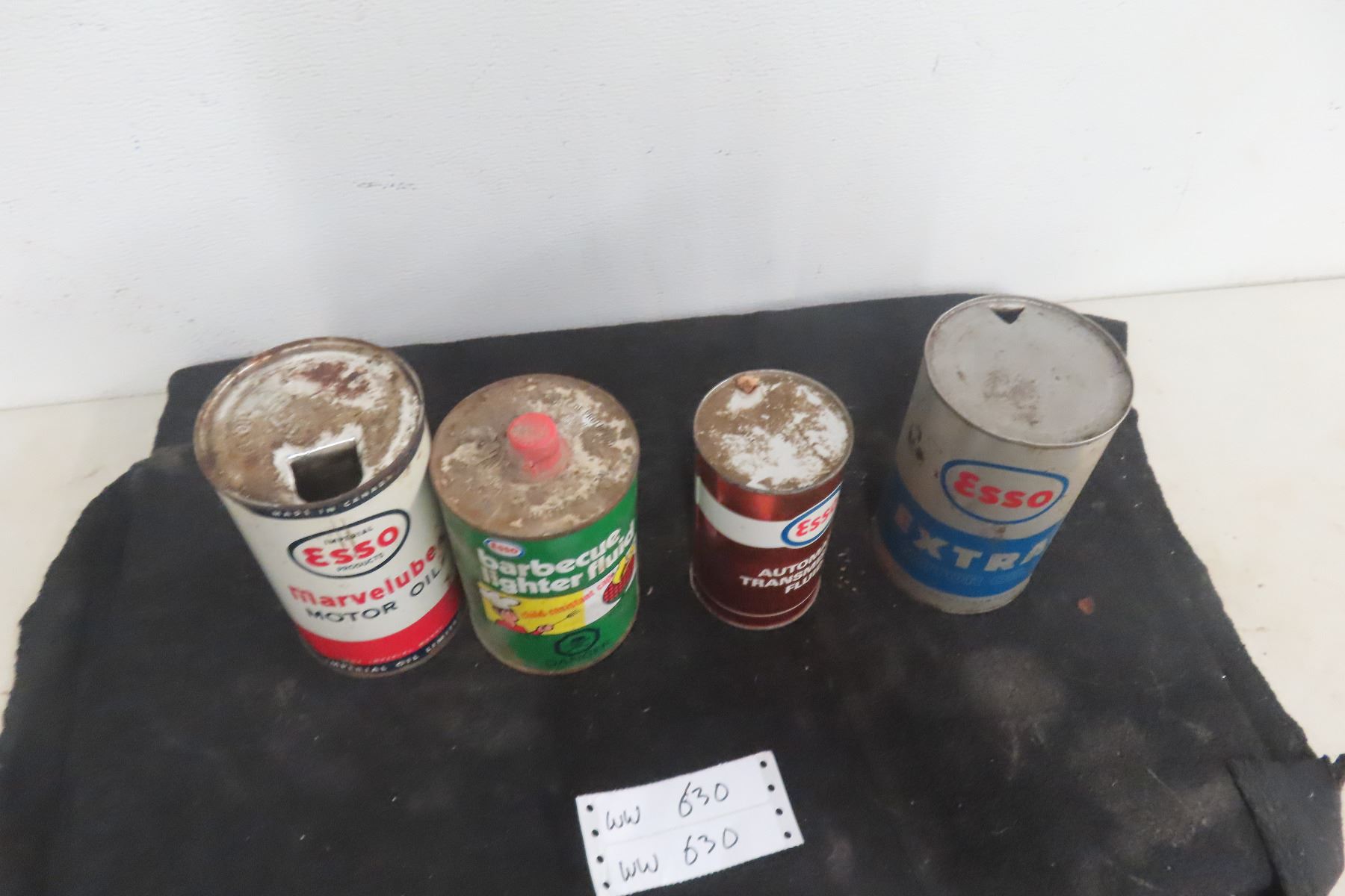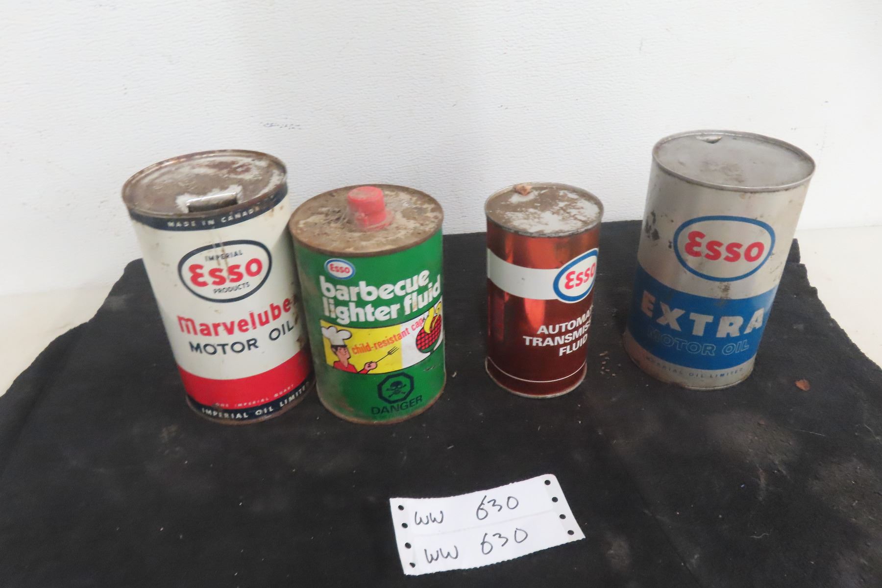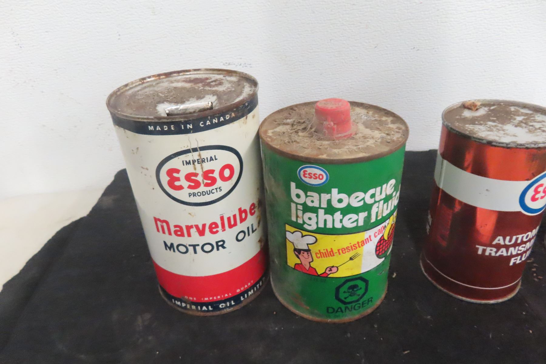 4 x Esso Cans - 2 Quart Motor Oil, Auto Trans Fluid Pint, Light Fluid