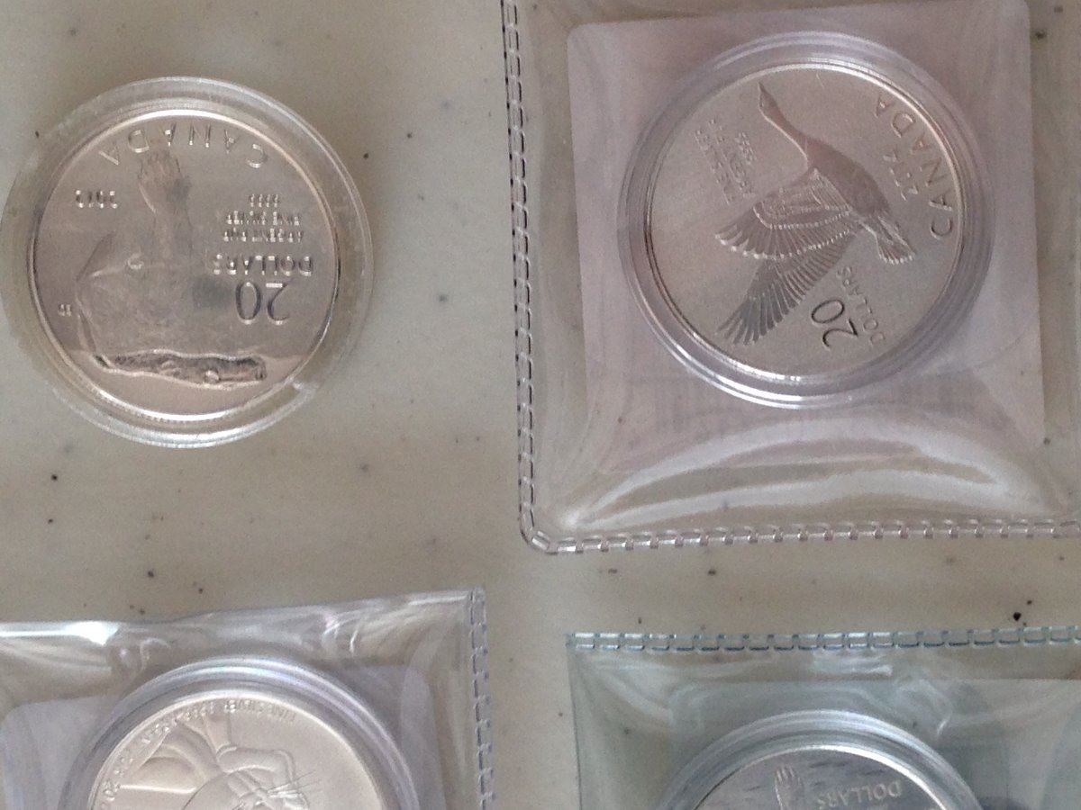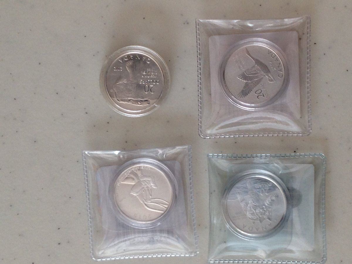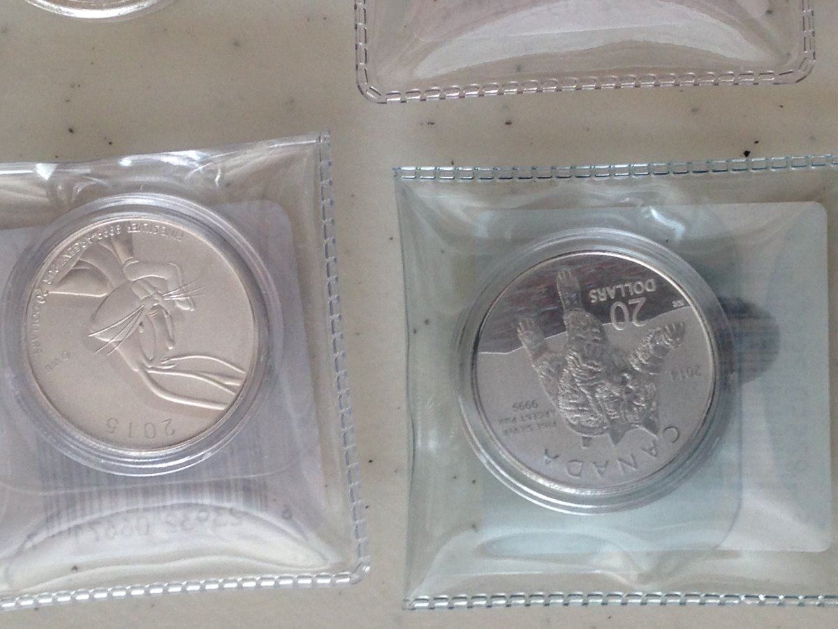 4 fine silver 999 $20 without card. 2012 Polar Bear, 2014 Geese, 2014 Red Lynx and 2015 Bugs Bunny