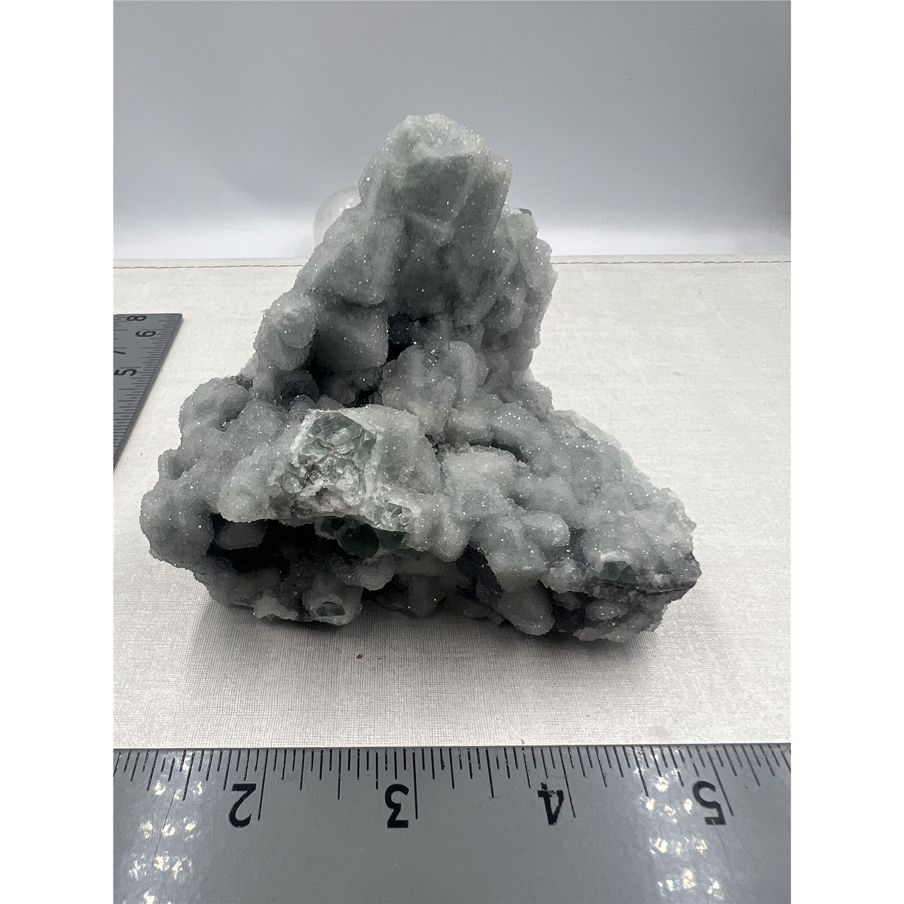 4 X 4 INCH GREEN FLOURITE WITH CALCITE