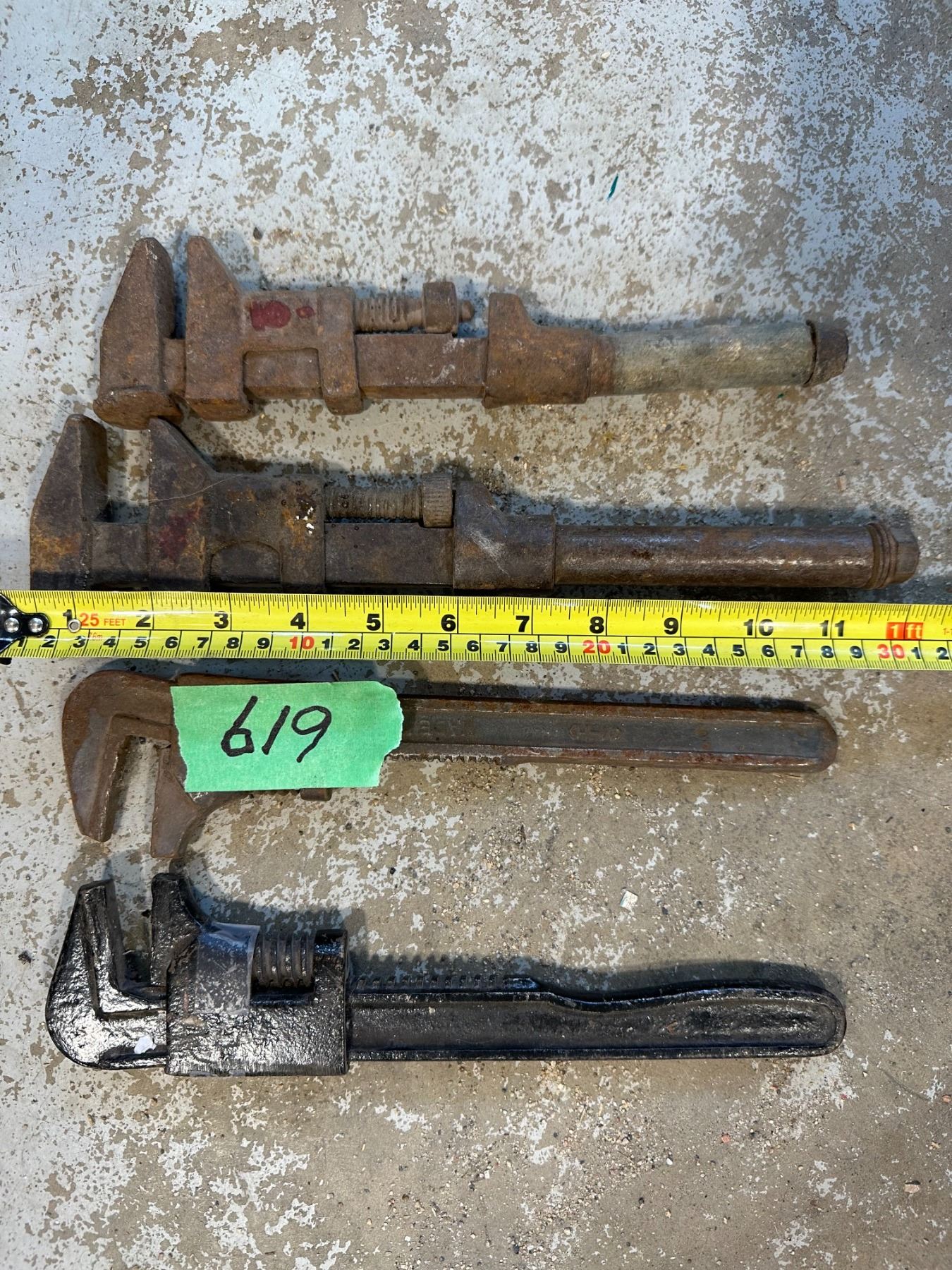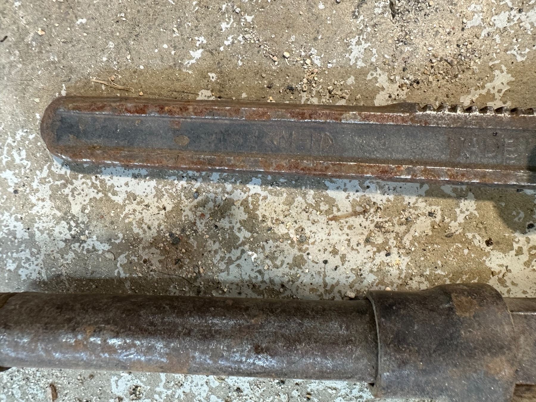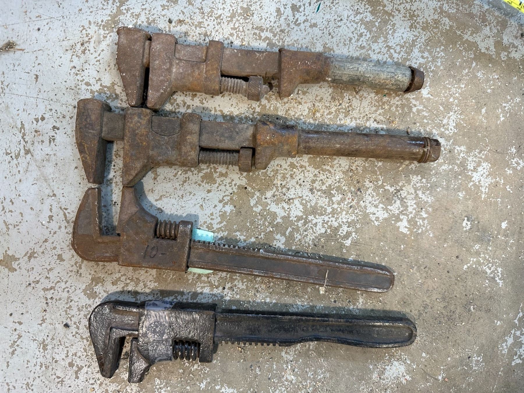 4 antique adjustable wrenches, 1 has MH (Massey Harris) embossed on it