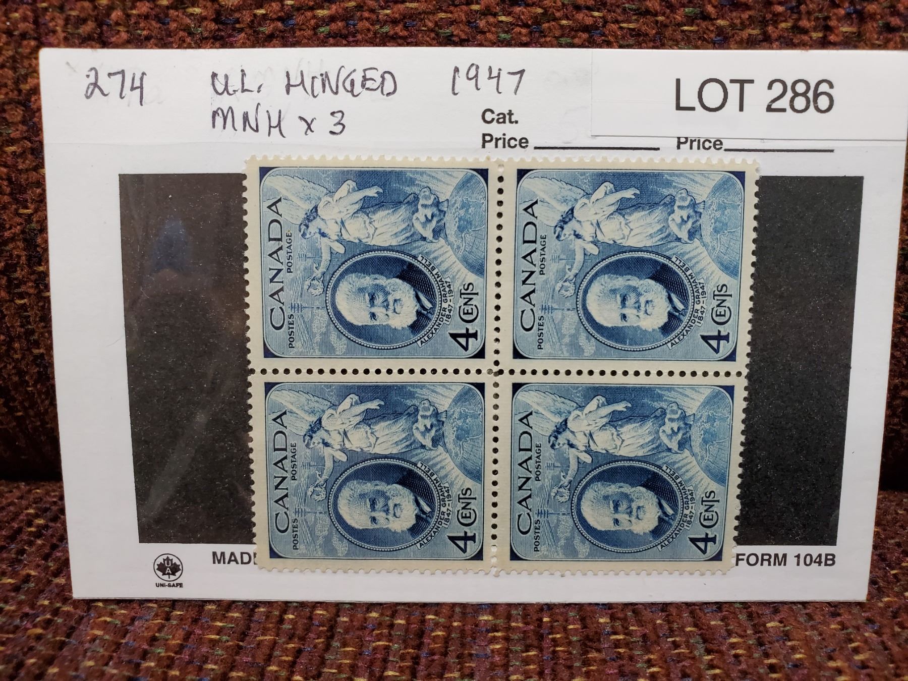4 block of Canadian 4c "Alex Graham Bell" stamps - mint