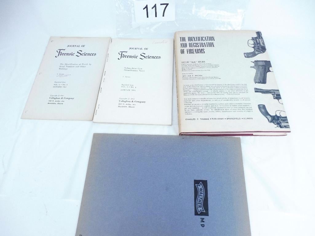 Hard cover, The Identification and Registration of Firearms 2 x The Journal of Forensic Sciences Author Jack Krcma has signed Dust jacket Walther Operating Manual for sub-machine gun All in excellent condition