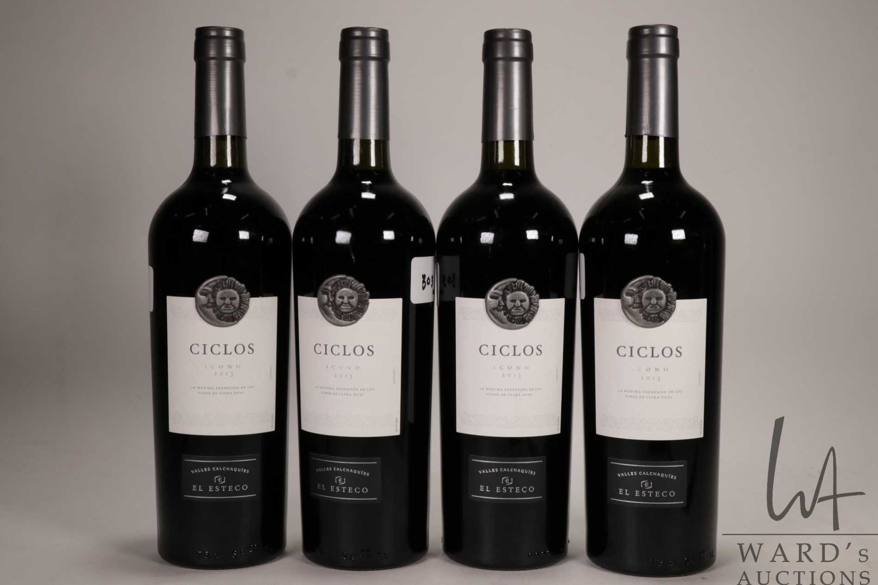 4 bottles of Ciclos / Icono / 2013 / 750ml / 14.5% ABV Note: Alcohol cannot be insured by any courier in Canada. Local pick up is recommended. Canadian bidders only