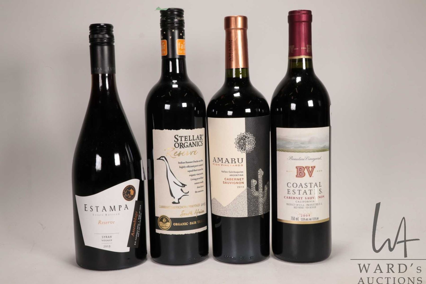 4 bottles of wine including Estampa / Reserve / Syrah / 750ml / 14.5%, a bottle of Stellar Organics / Cabernet Sauvignon / 750ml / 13.5%, a bottle of Amaru / Cabernet Sauvignon / 750ml / 14% ABV, and a bottle of BV / Coastal Estates / Cabernet Sauvignon / 750ml / 13.5% ABV Note: Alcohol cannot be insured by any courier in Canada. Local pick up is recommended. Canadian bidders only