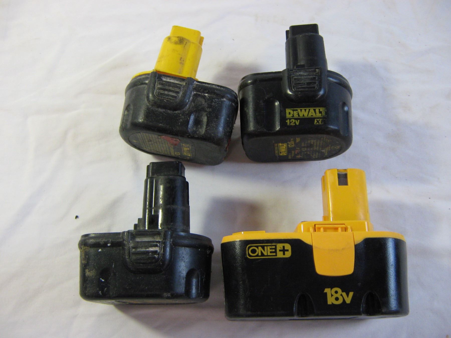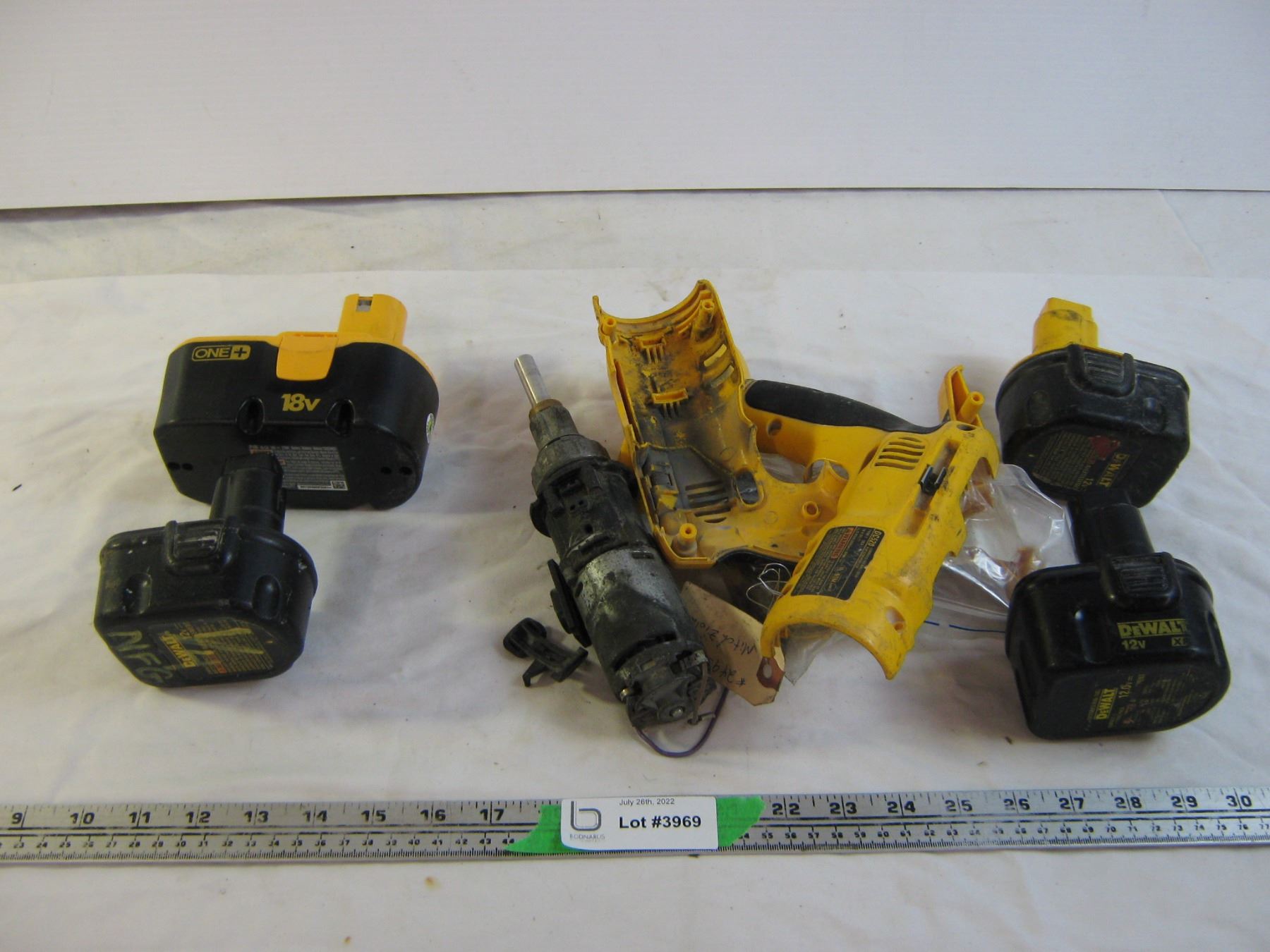 (4) cordless drill batteries and drill for parts, batteries unknown if working