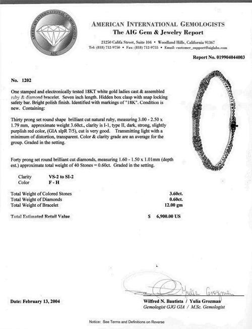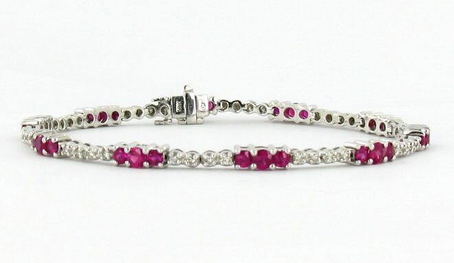 Wonderful 7" NEW white gold pink ruby and diamond bracelet; 30 high grade rubies and 40 diamonds; 2003 appraised $6900; current retail $11000+