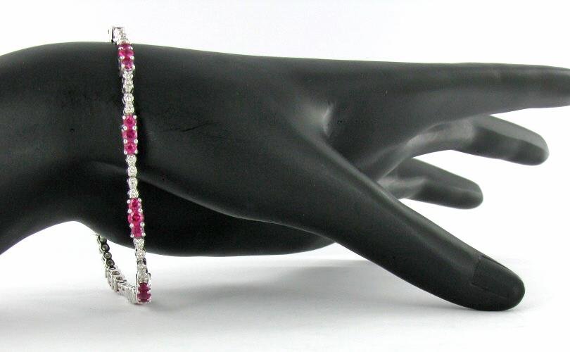Wonderful 7" NEW white gold pink ruby and diamond bracelet; 30 high grade rubies and 40 diamonds; 2003 appraised $6900; current retail $11000+