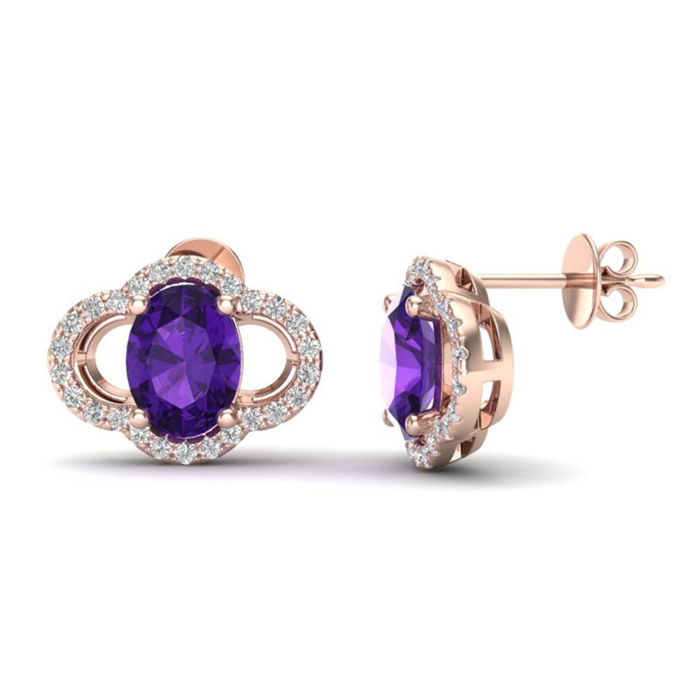 REF-45M3G - SKU: 20279 ---- 4 ctw Amethyst & Micro Pave VS/SI Diamond Earrings 10k Rose Gold