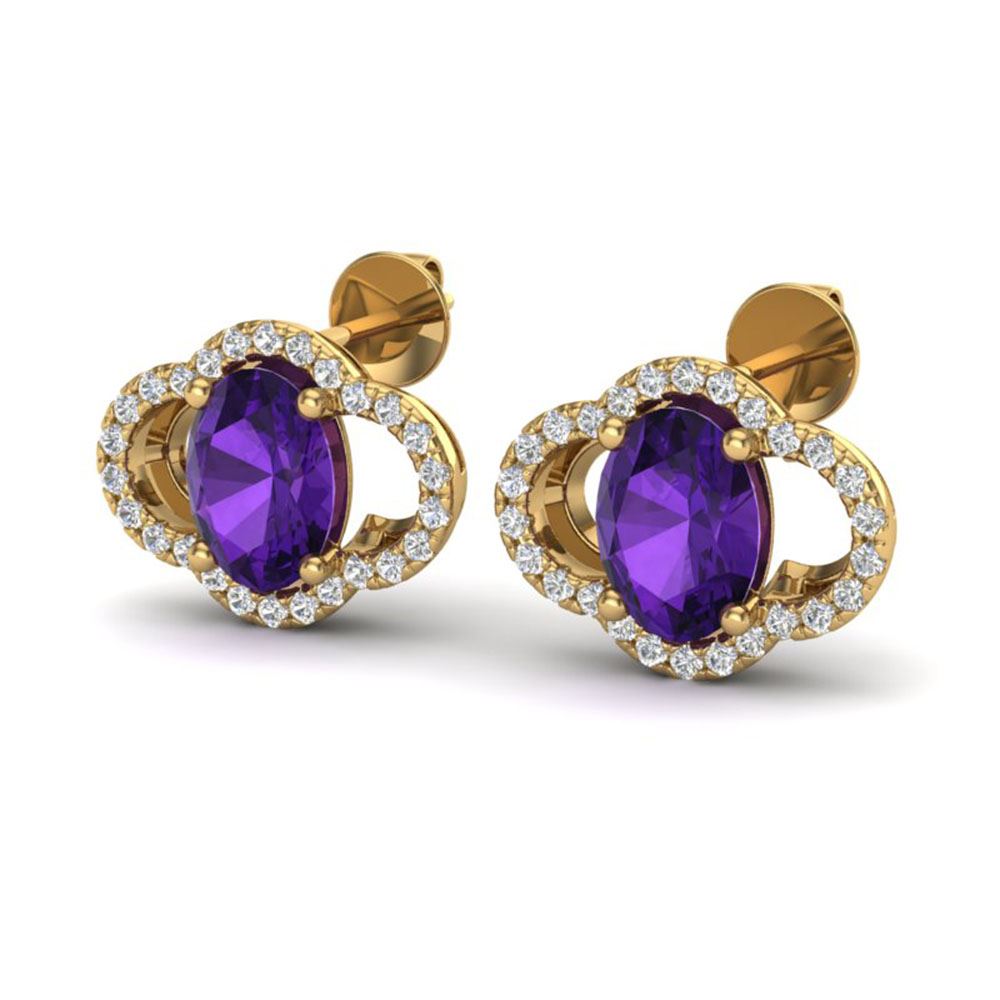 REF-45R3K - SKU: 20281 ---- 4 ctw Amethyst & Micro Pave VS/SI Diamond Earrings 10k Yellow Gold