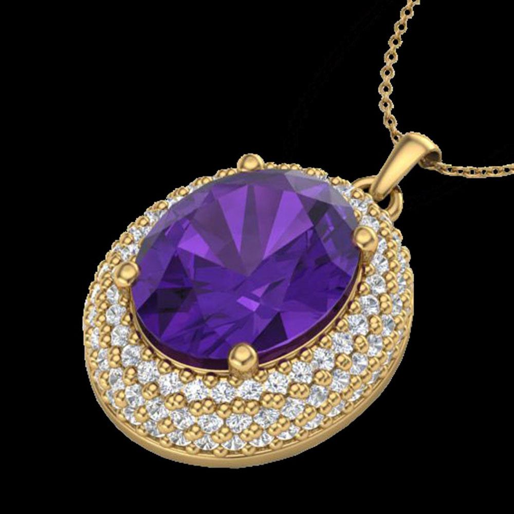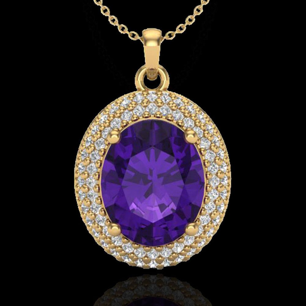REF-91W8H - SKU: 20552 ---- 4 ctw Amethyst & Micro Pave VS/SI Diamond Necklace 18k Yellow Gold