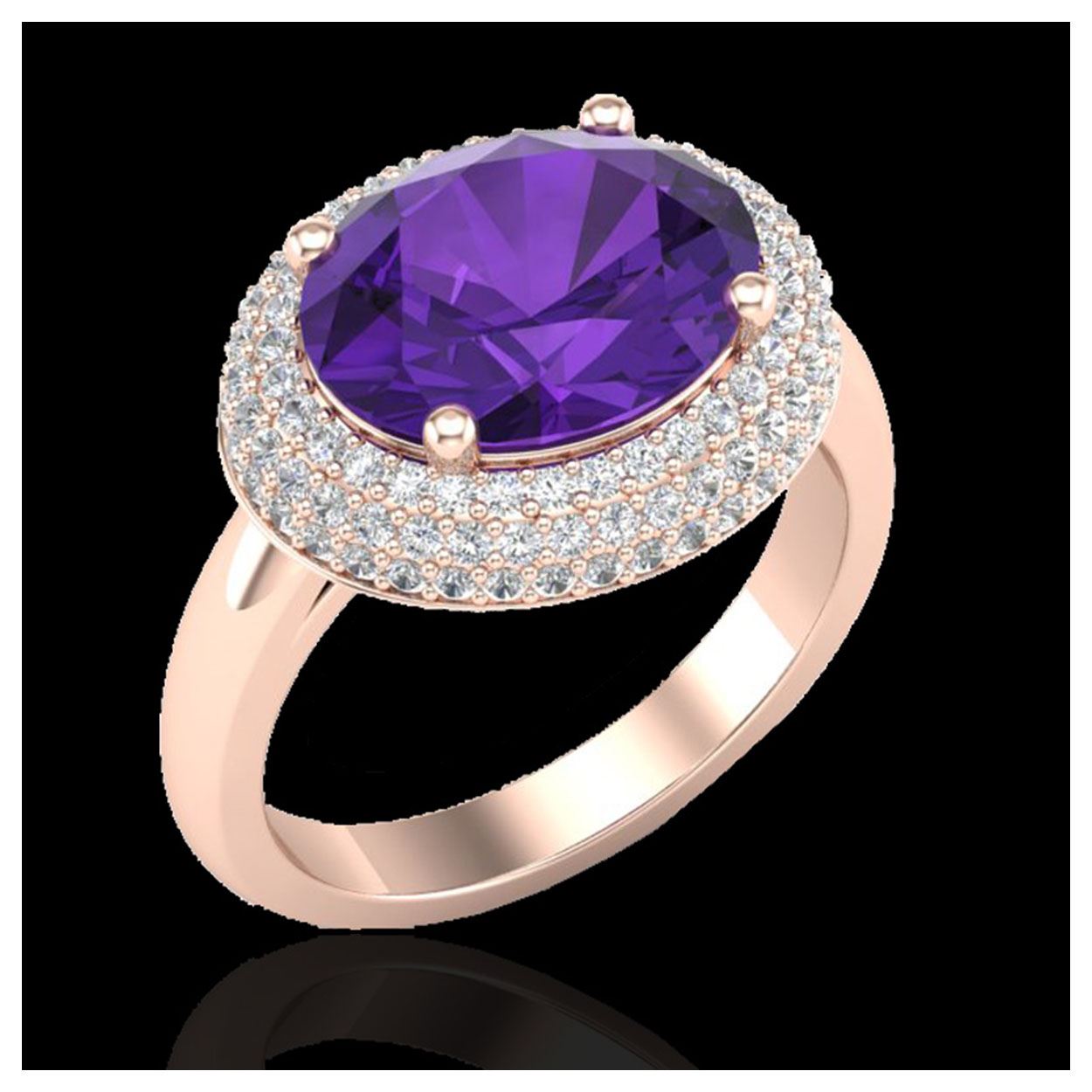 4 ctw Amethyst & VS/SI Diamond Ring 14K Rose Gold