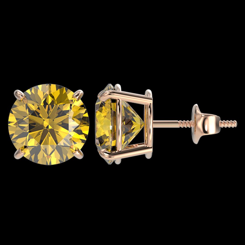 REF-724A3N - SKU: 33140 ---- 4 ctw Certified Intense Yellow Diamond Stud Earrings 10k Rose Gold