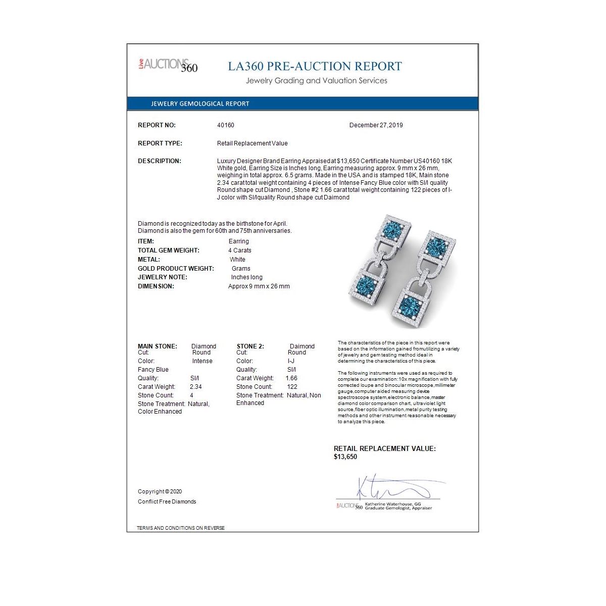 REF-292F5M - SKU: 40160 ---- 4 ctw Certified SI/I Intense Blue Diamond Earrings 18K White Gold