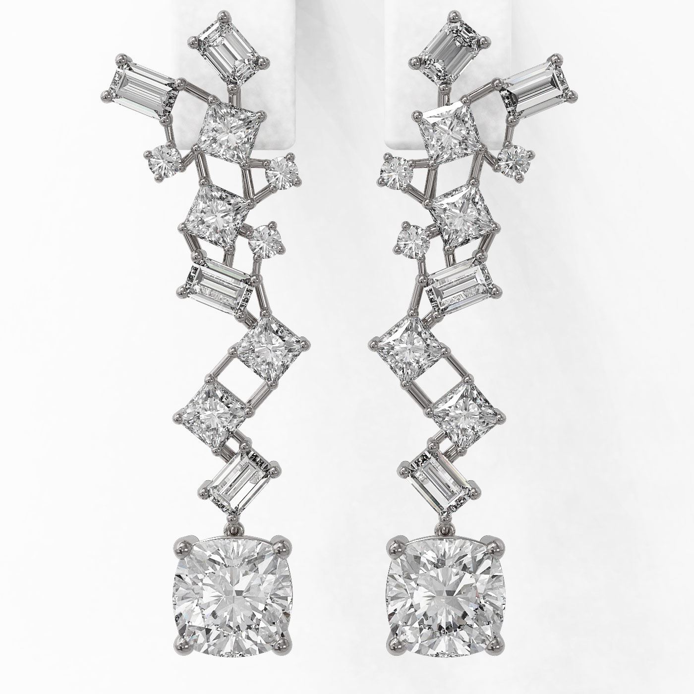 SKU: 48882 ---- 4 ctw Cushion Cut Diamond Designer Earrings 18K White Gold