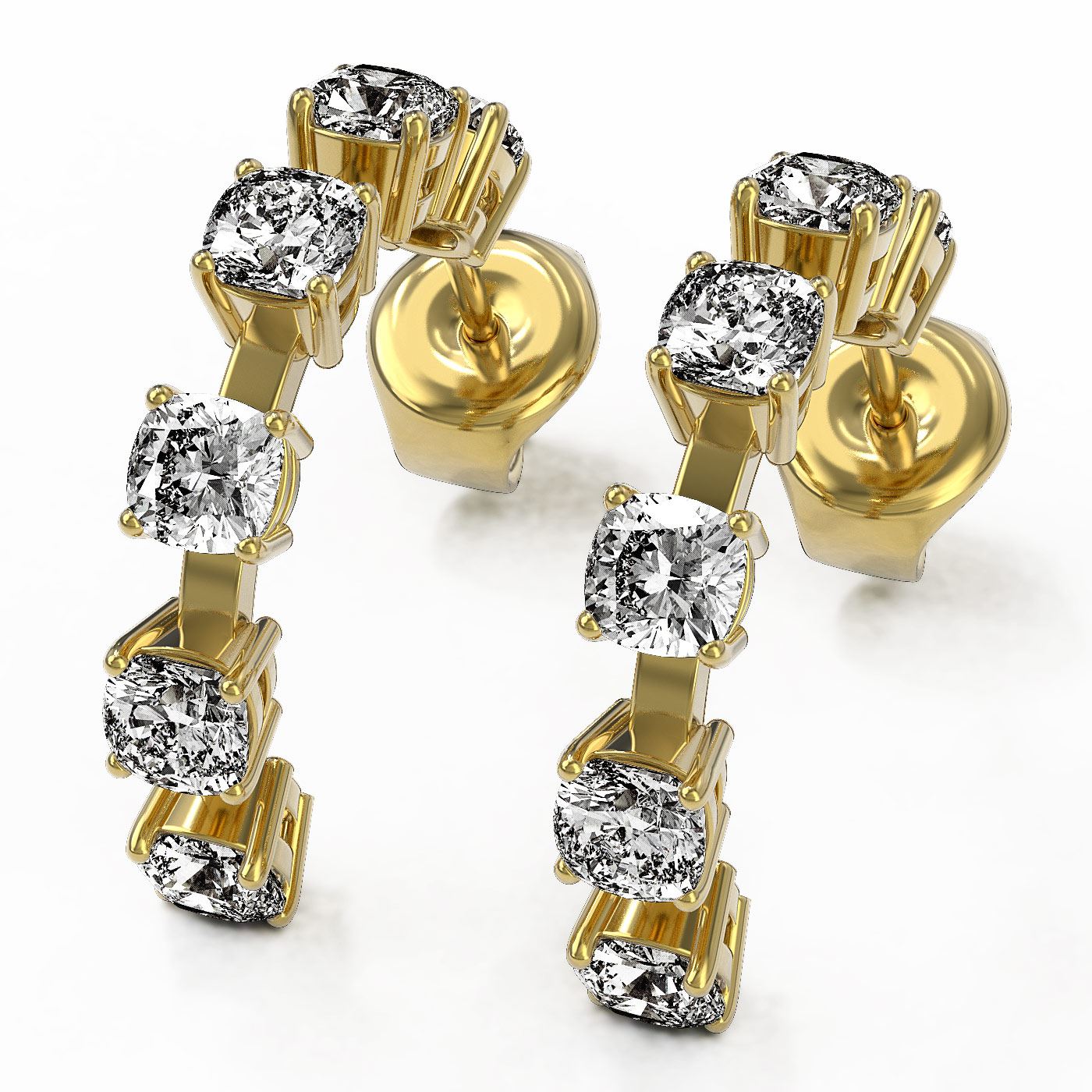 REF-455N3F - SKU: 47279 ---- 4 ctw Cushion Cut Diamond Designer Earrings 18K Yellow Gold