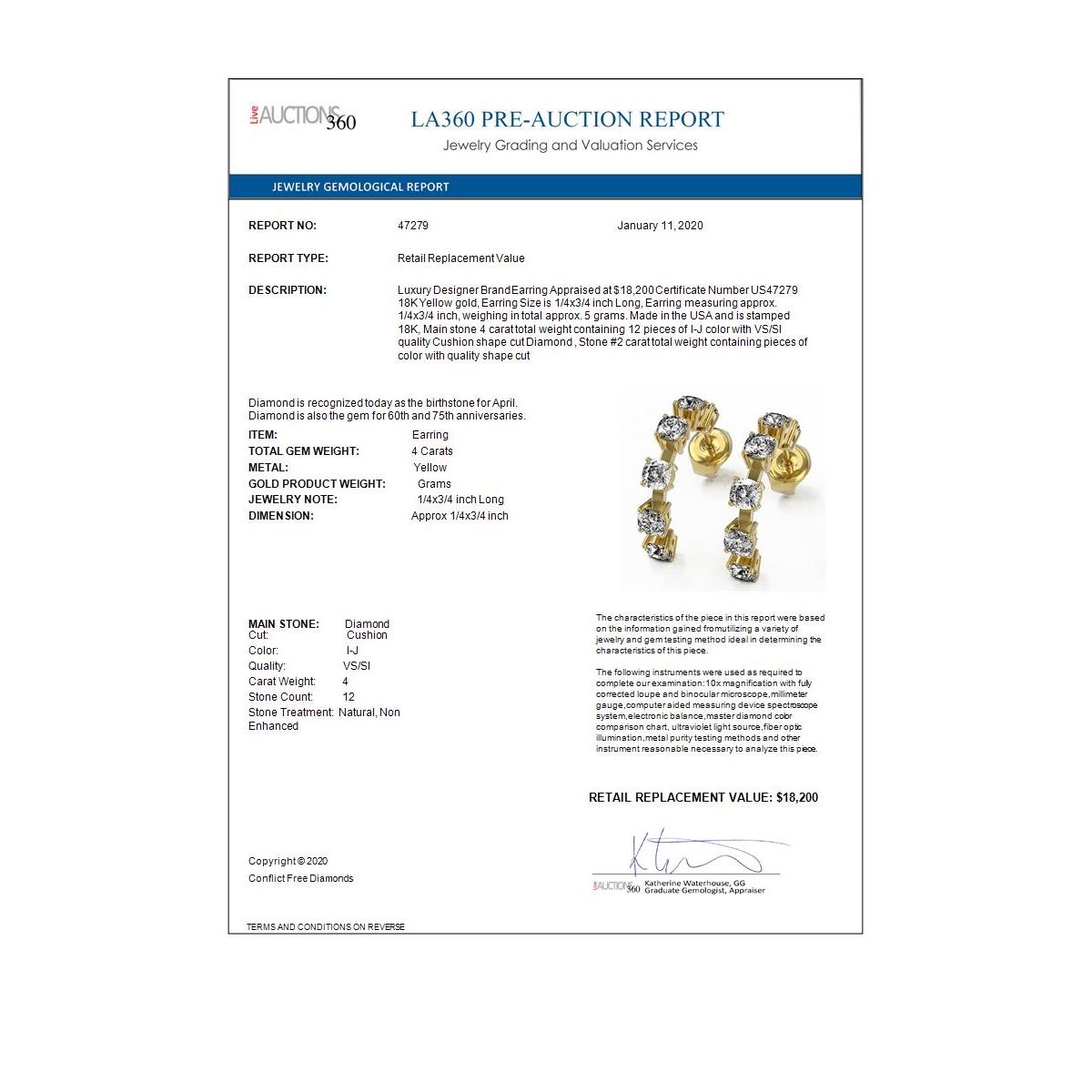 REF-455N3F - SKU: 47279 ---- 4 ctw Cushion Cut Diamond Designer Earrings 18K Yellow Gold