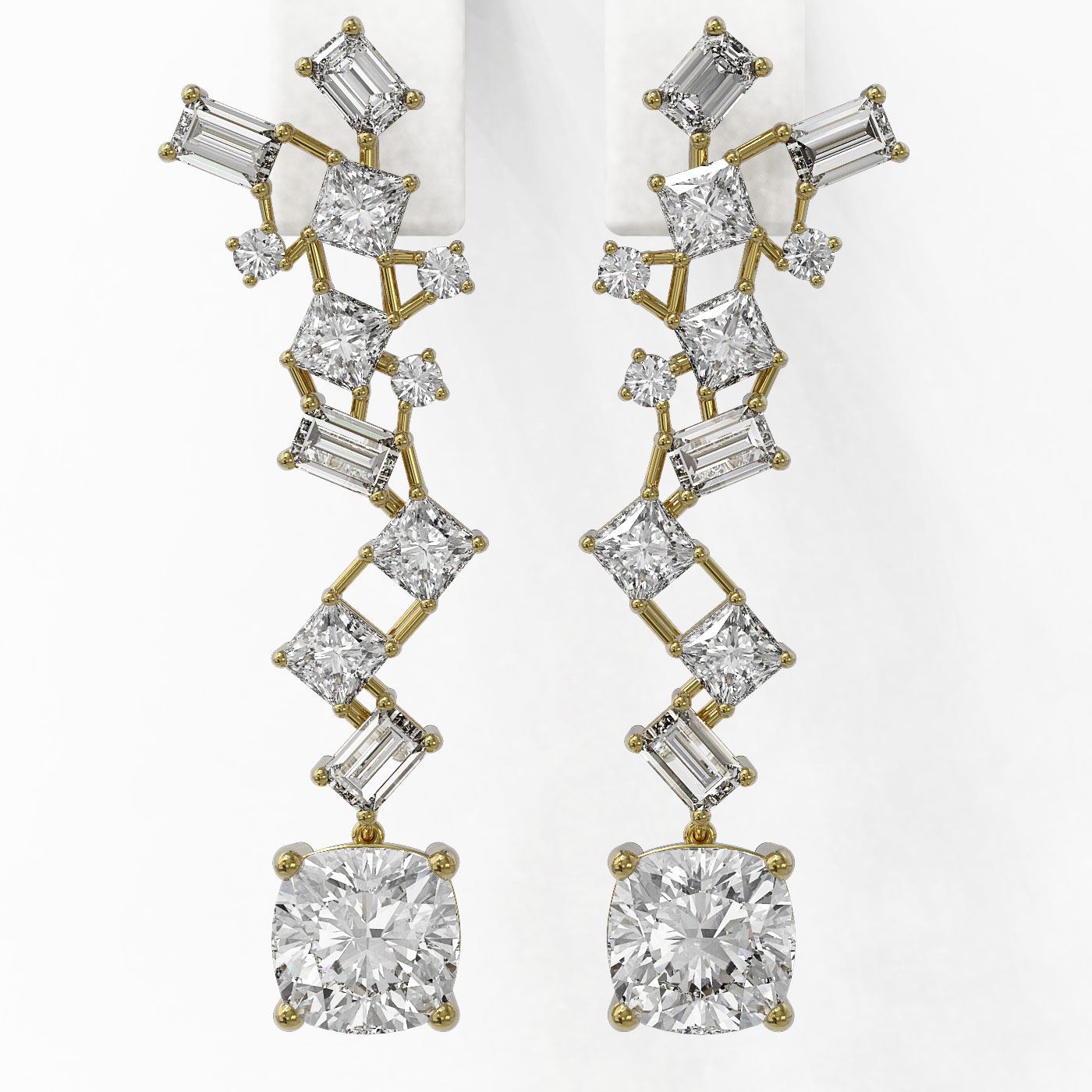 REF-814F5M - SKU: 48884 ---- 4 ctw Cushion Cut Diamond Designer Earrings 18K Yellow Gold