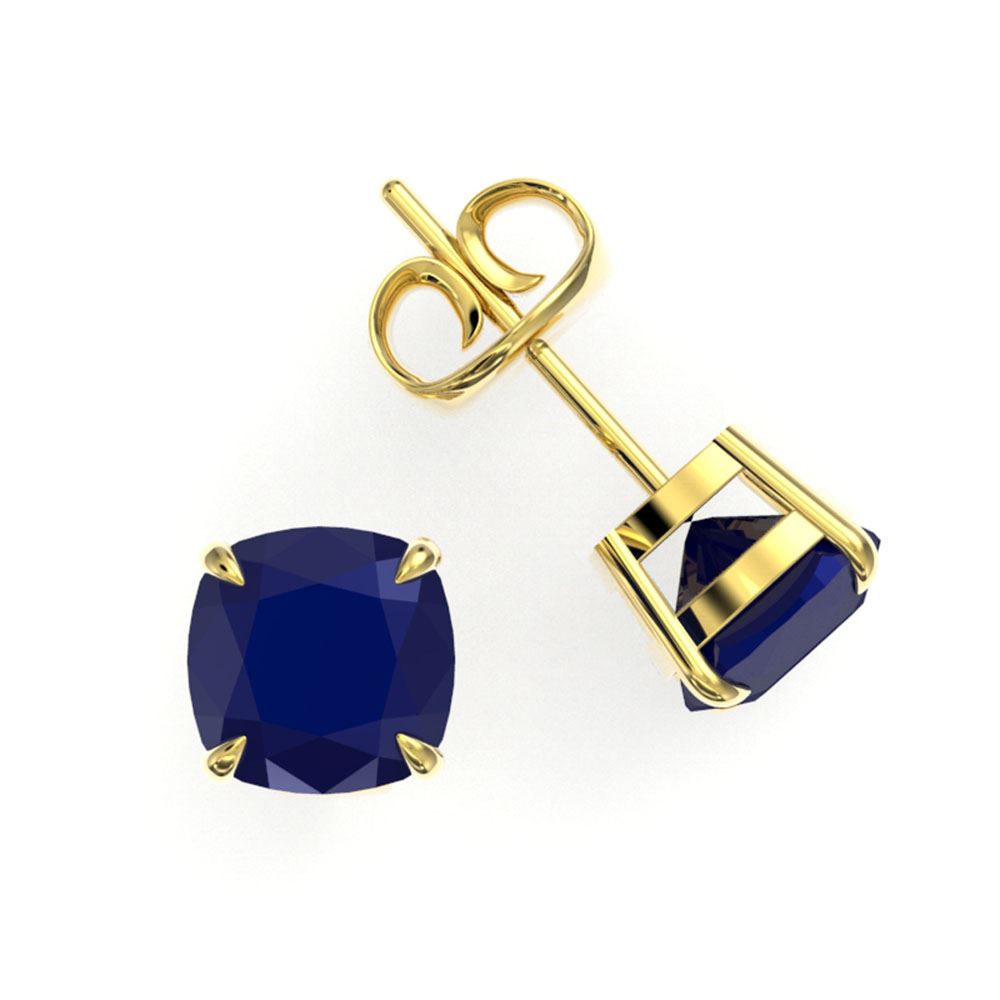 REF-30F2M - SKU: 21761 ---- 4 ctw Cushion Cut Sapphire Designer Stud Earrings 18k Yellow Gold