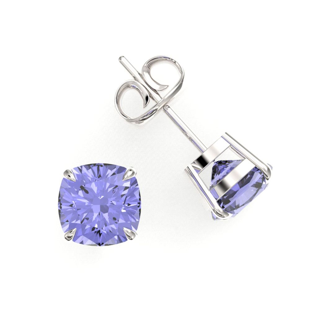 REF-40X9A - SKU: 21763 ---- 4 ctw Cushion Cut Tanzanite Designer Stud Earrings 18k White Gold
