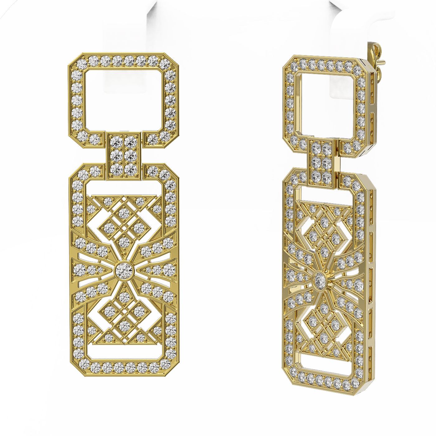 SKU: 50225 ---- 4 ctw Diamond Designer Earrings 18K Yellow Gold