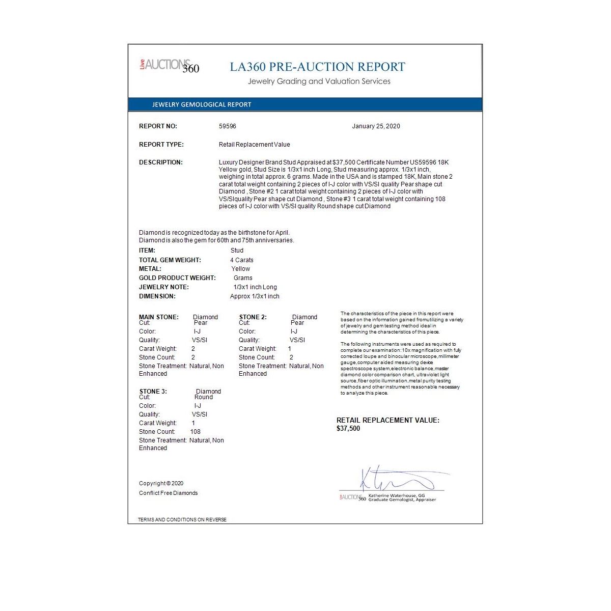 REF-877M9G - SKU: 59596 ---- 4 ctw Diamond Earrings 18K Yellow Gold