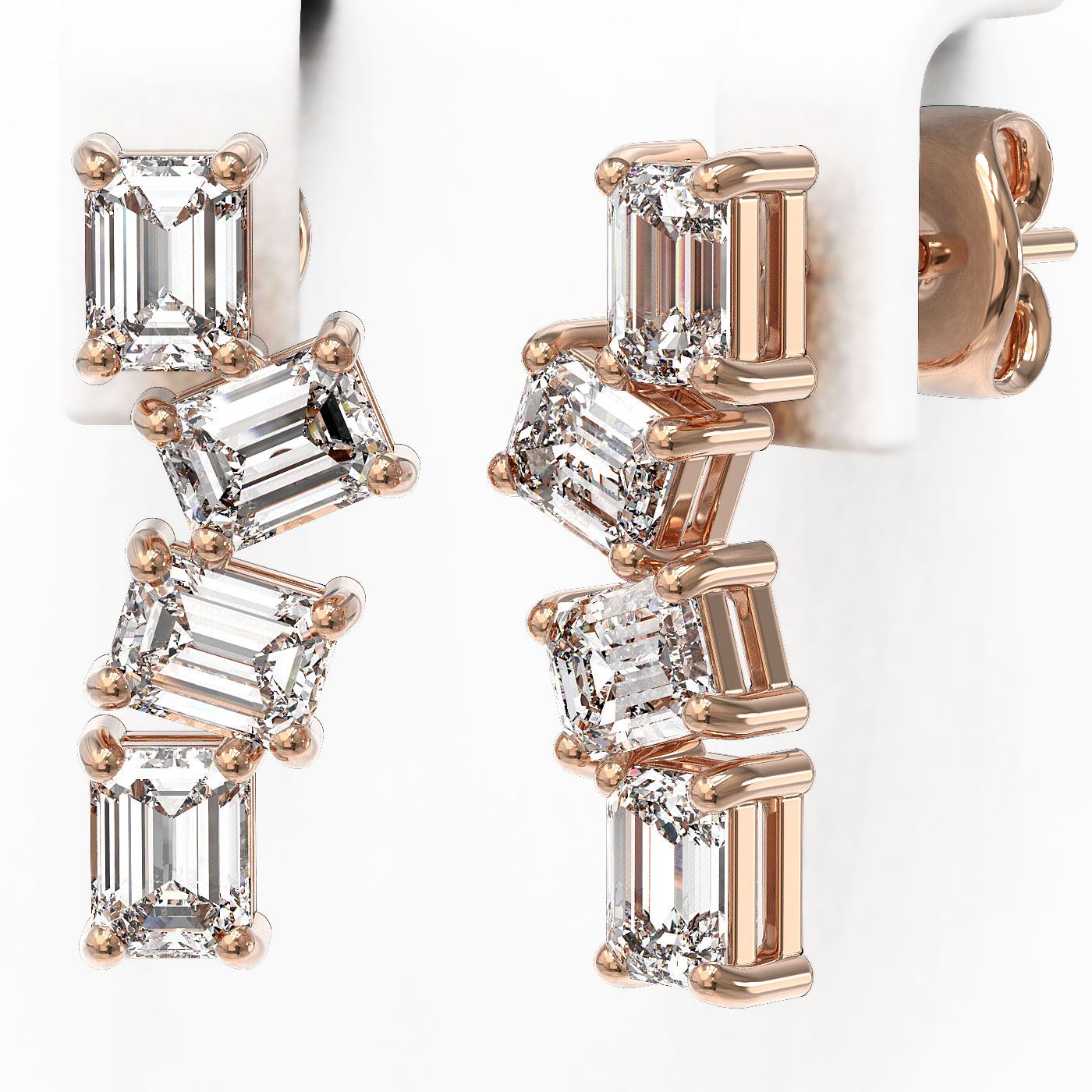 SKU: 46450 ---- 4 ctw Emerald Cut Diamond Earrings 18K Rose Gold