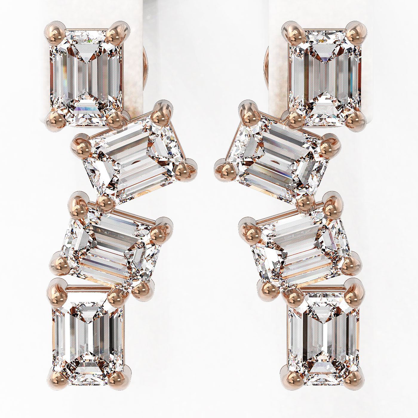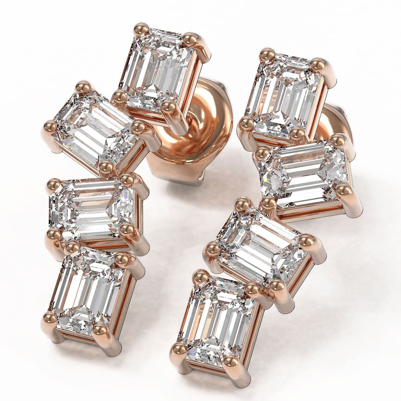 SKU: 46450 ---- 4 ctw Emerald Cut Diamond Earrings 18K Rose Gold