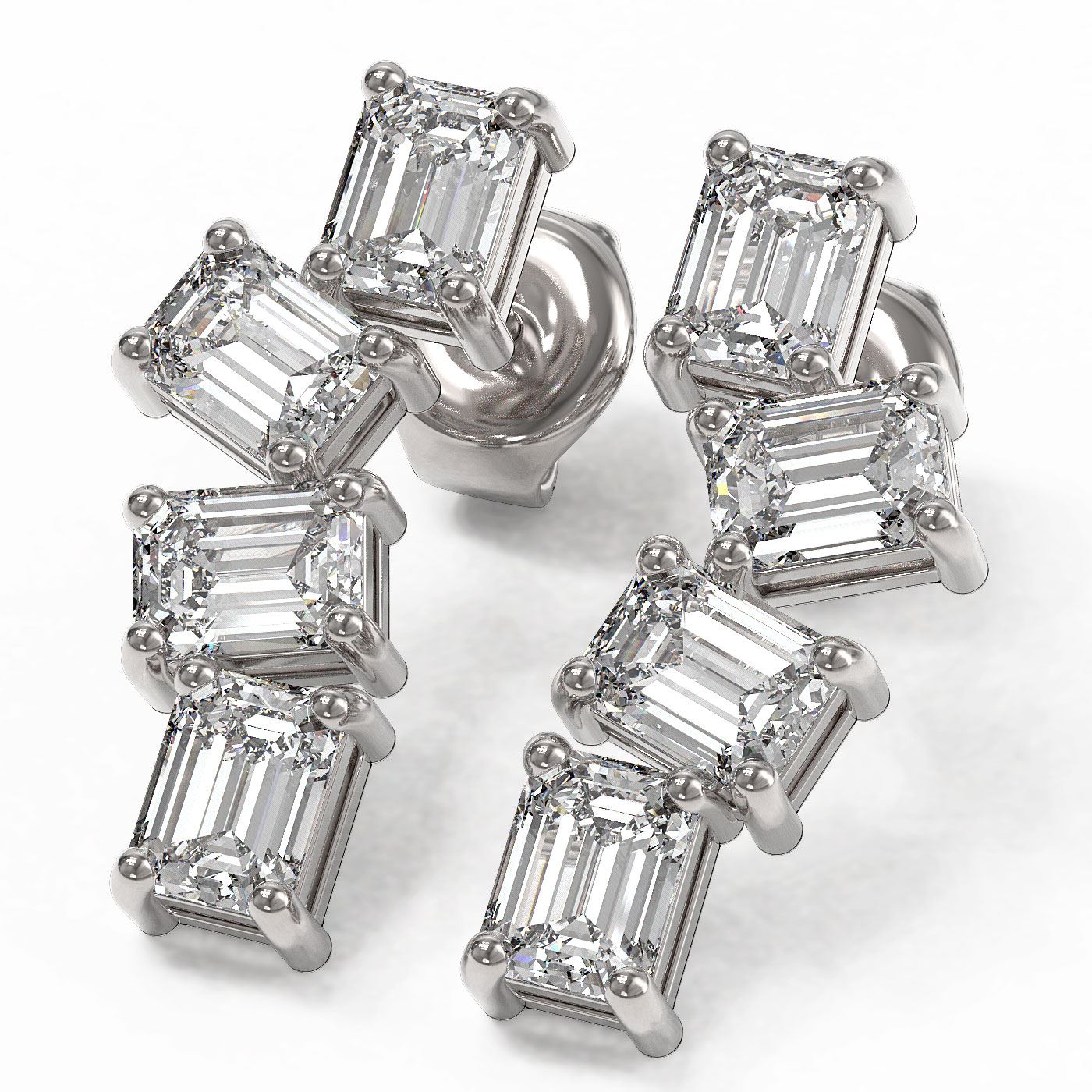 SKU: 46449 ---- 4 ctw Emerald Cut Diamond Earrings 18K White Gold
