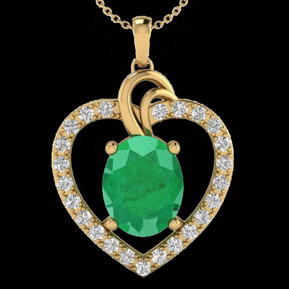 REF-81K8Y - SKU: 20493 ---- 4 ctw Emerald & VS/SI Diamond Designer Heart Necklace 14k Yellow Gold