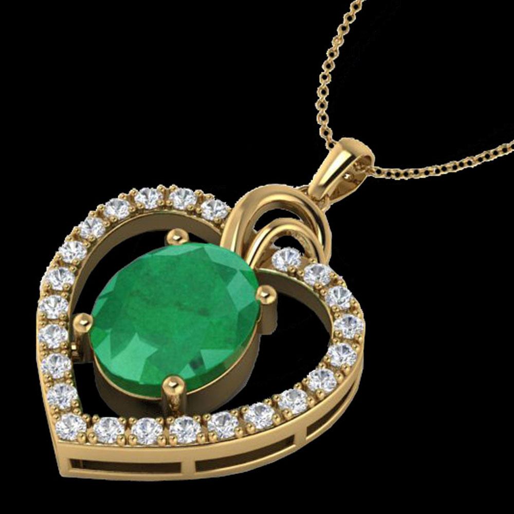 REF-81K8Y - SKU: 20493 ---- 4 ctw Emerald & VS/SI Diamond Designer Heart Necklace 14k Yellow Gold