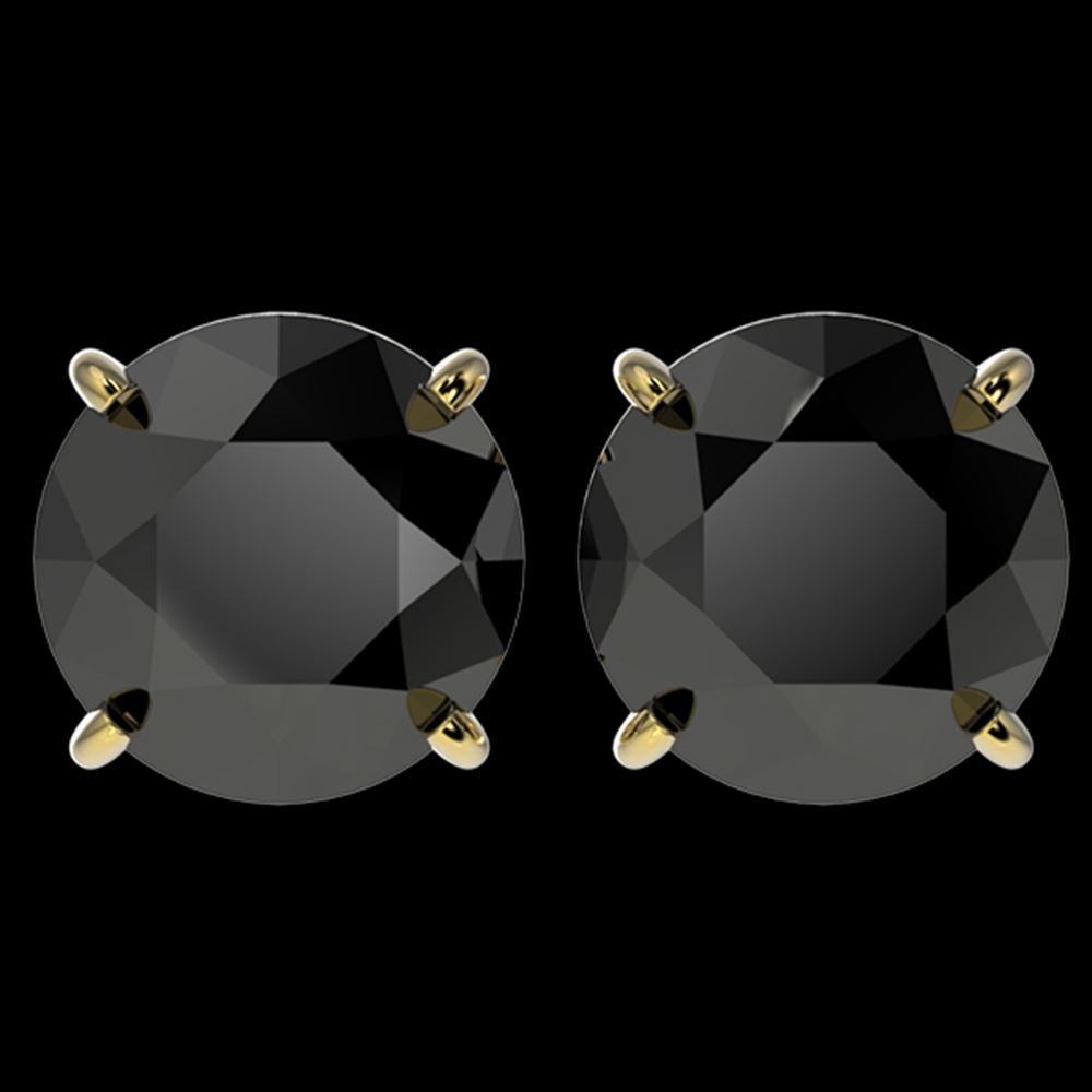 REF-68M8G - SKU: 33136 ---- 4 ctw Fancy Black Diamond Solitaire Stud Earrings 10k Yellow Gold