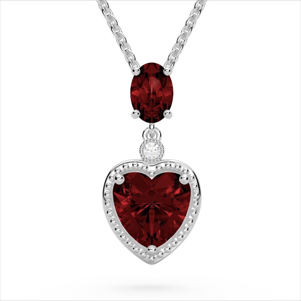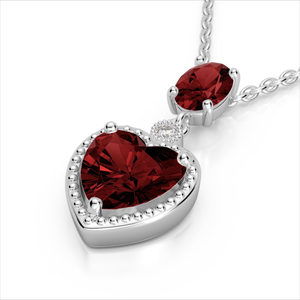 REF-21H3R - SKU: 22523 ---- 4 ctw Garnet & VS/SI Diamond Designer Heart Necklace 10k White Gold