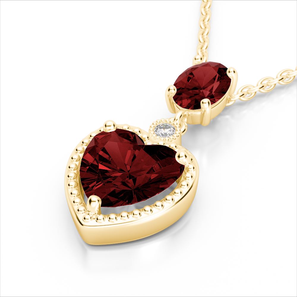 REF-21X3A - SKU: 22525 ---- 4 ctw Garnet & VS/SI Diamond Designer Heart Necklace 10k Yellow Gold
